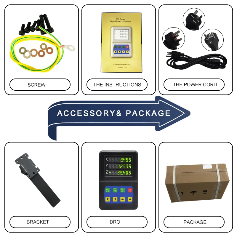 2 Axis DRO SetOrder included :1*3 Axis Digital Readout3 * Standard linear scale 150-1000MM1* User manual1* Suitable PlugAll of installation accessory are included (Dust cover ,mounting plate ,bracket ,little wiring ...)Travel length (LO):150mm ,200mm ,250mm ,300mm , 350mm , 400mm ,450mm ,500mm ,550mm ,600mm 700mm ,800mm 900mm 1000mmPls choose 3pcs scale from the above lengthIf you need customized travel length ,Pls contact us seller