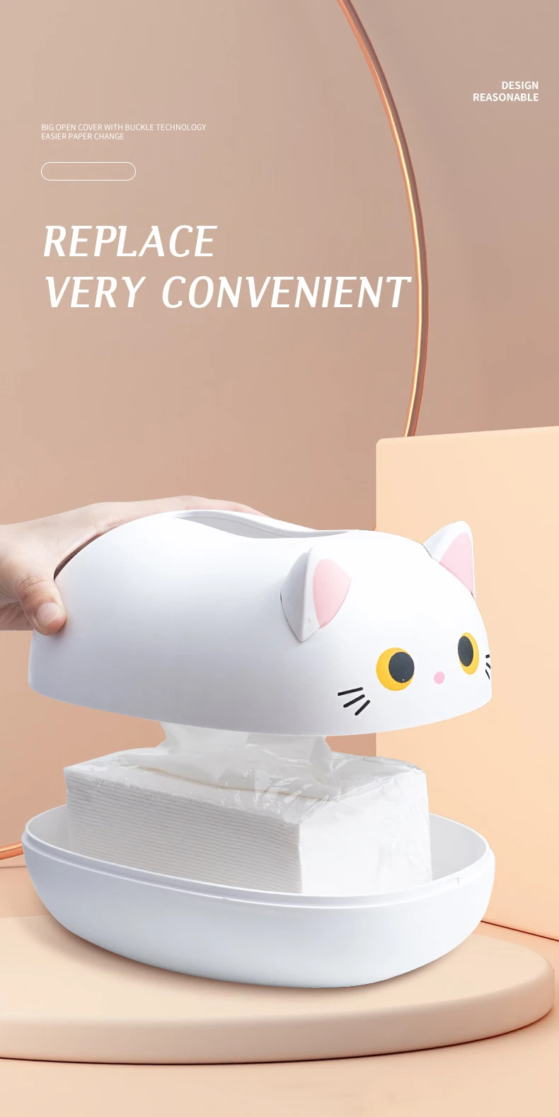 Милый Кот форма с одноразовыми салфетками, Ушную раковину может использоваться как подставка для зубочисток.