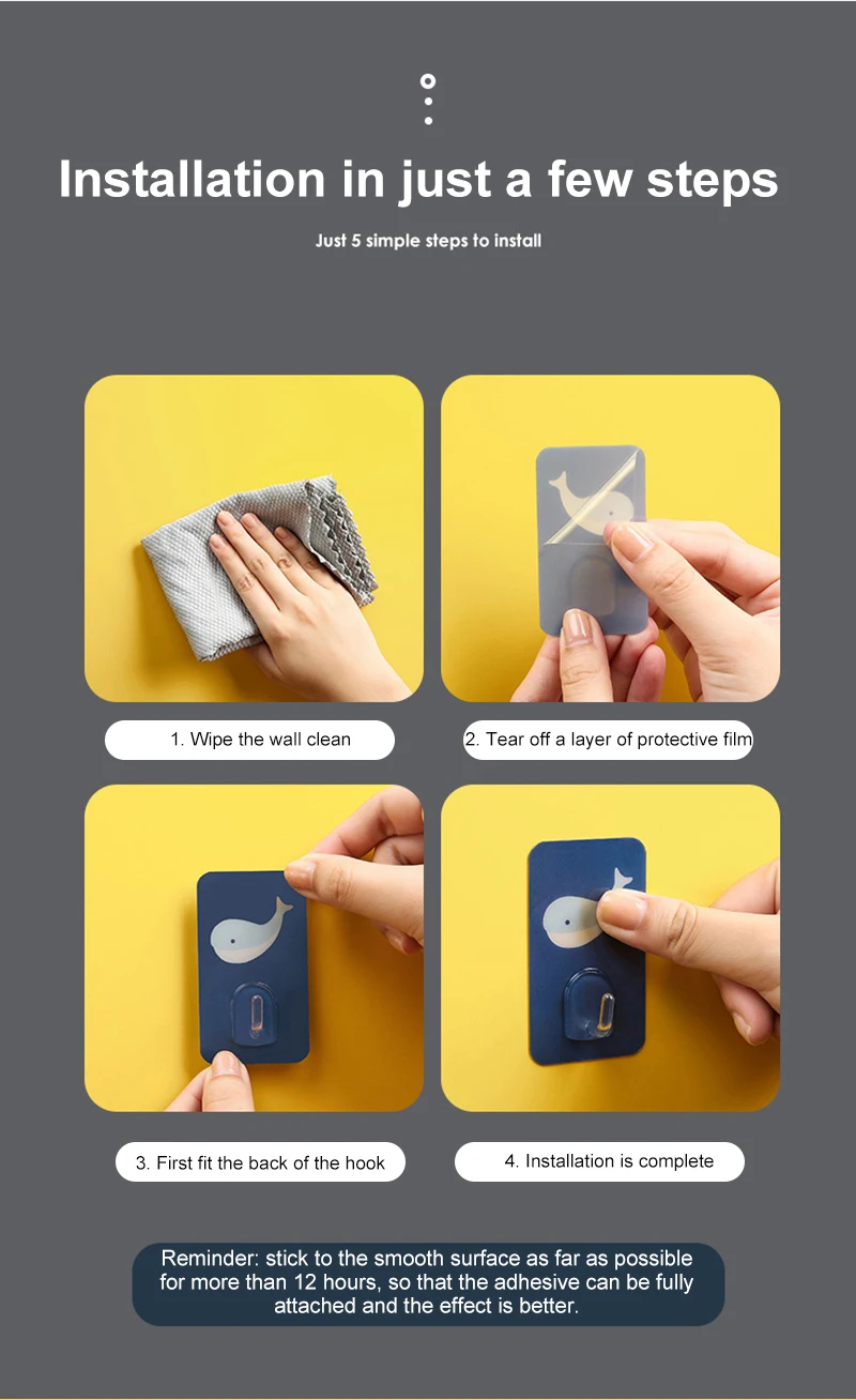Напоминание: приклейте к гладкой поверхности в течение более 12 часов, чтобы