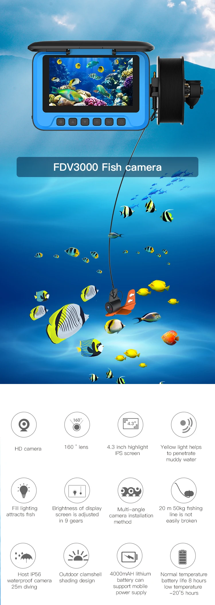 Используется для подводное наблюдение или наблюдение за рыбалкой и т. Д.