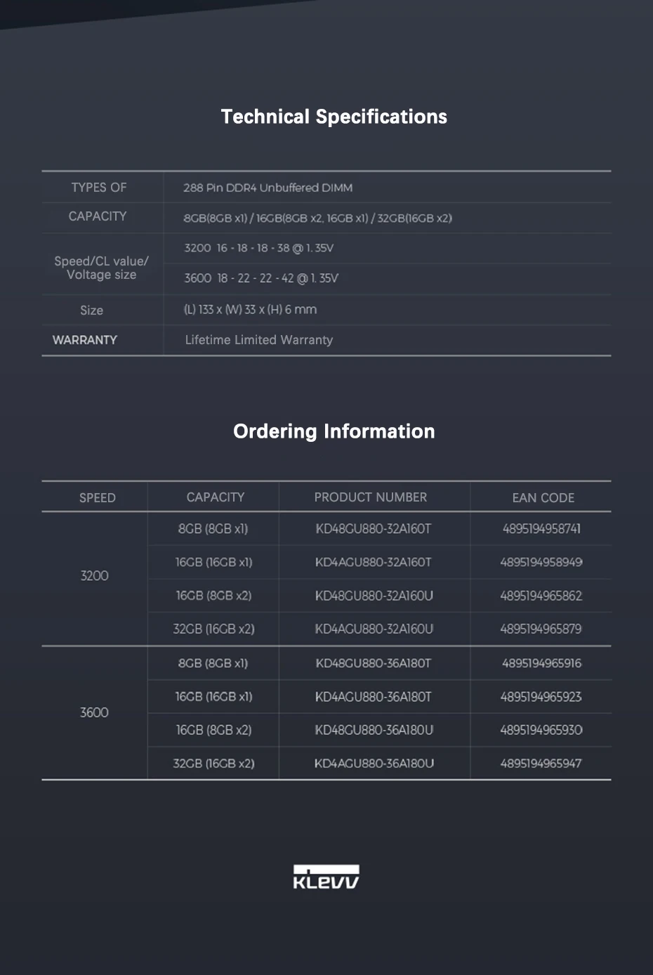 [Технические характеристики] Тип: 288 Pin DDR4 Unbuffered DIMM для настольных ПК,