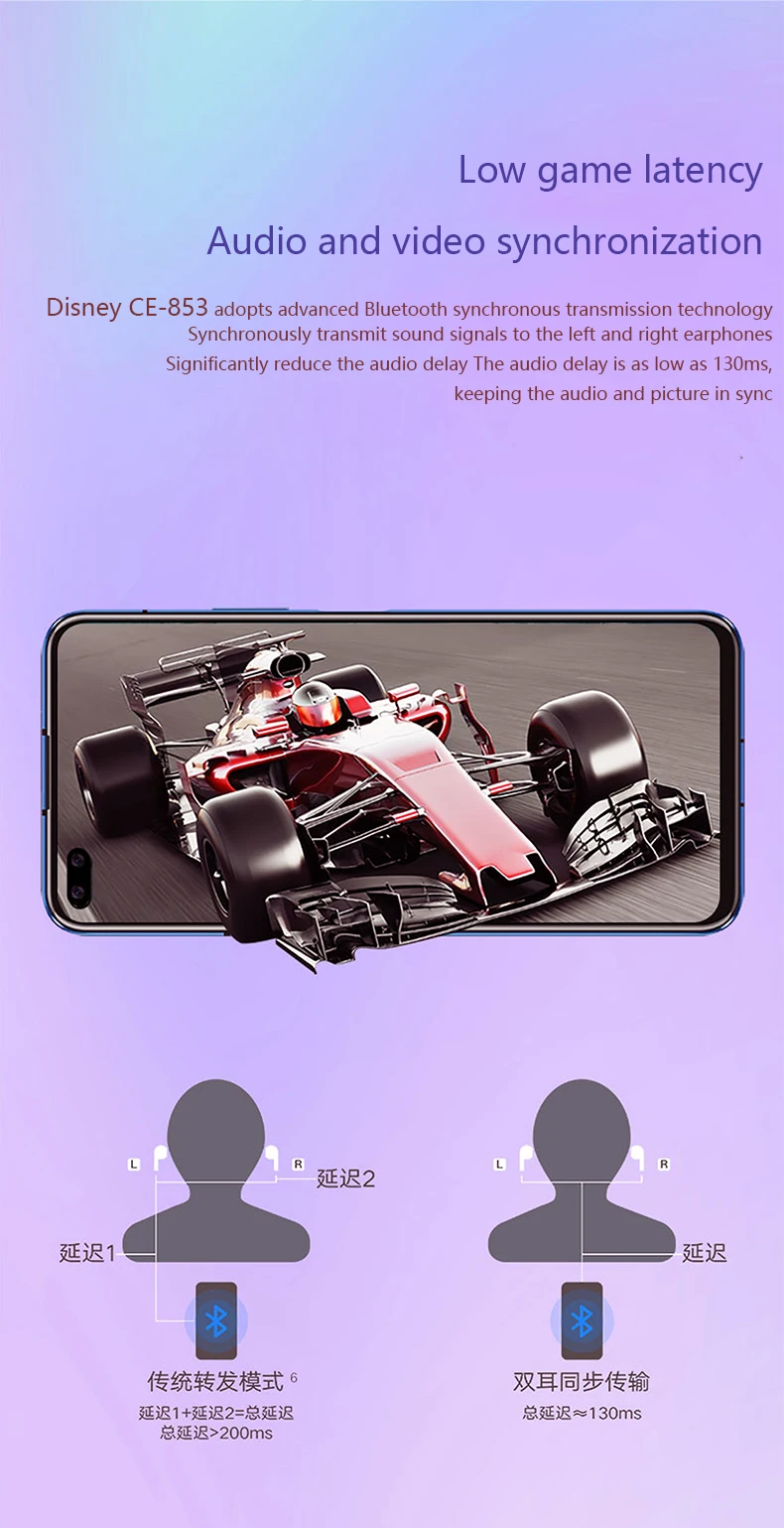 4. Новое поколение низкомощных Bluetooth 5,0, низкая задержка и высокая передача, а также синхронизация аудио и видео.