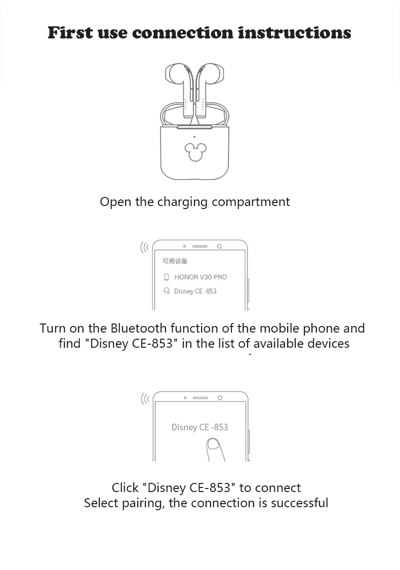 6. После сопряжения с вашим телефоном в первый раз, вам нужно удалить гарнитуру каждый раз, когда вы открываете чехол для зарядки, вы можете быстро и автоматически подключиться к телефону.