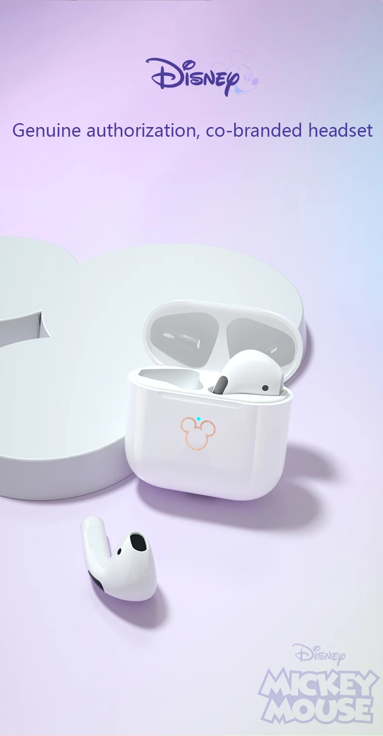 Disney Mickey Bluetooth наушники HiFi BT 5.0 беспроводная гарнитура с сенсорным управлением водонепроницаемые наушники