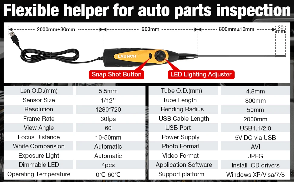 Launch VSP-600 USB HD камера для осмотра Видеоскоп 5,5 мм 6 светодиодных ламп для X431 для просмотра видео изображений труднодоступных мест
