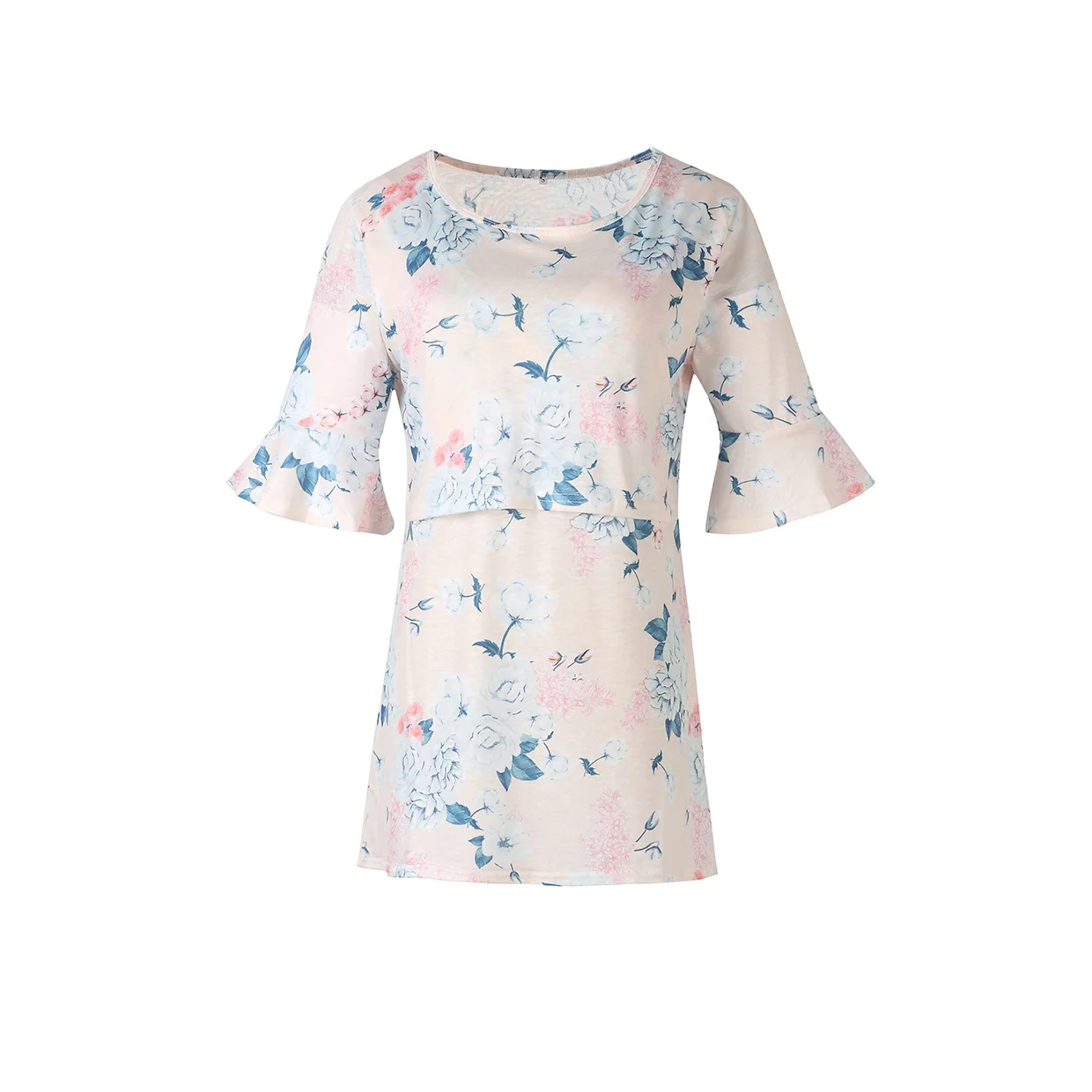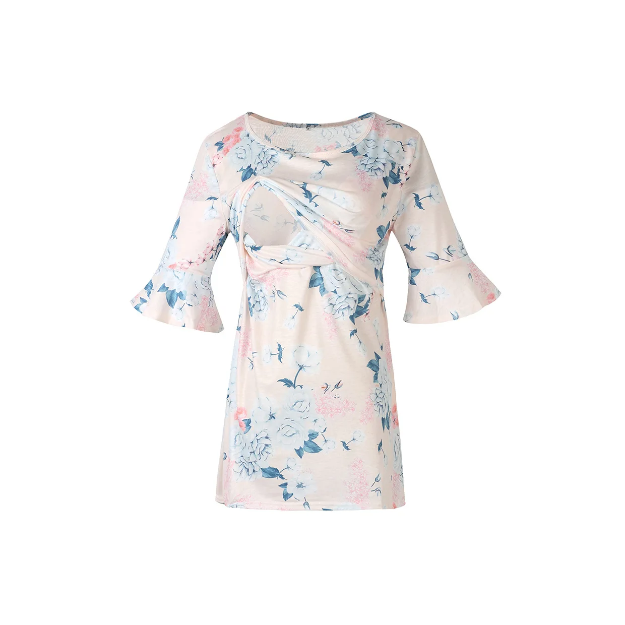 Платье для беременных с коротким рукавом, футболка с круглым вырезом и принтом для беременных, одежда для грудного вскармливания, модная верхняя одежда для беременных женщин, Ropa Premama