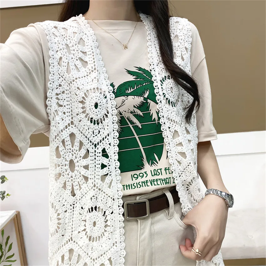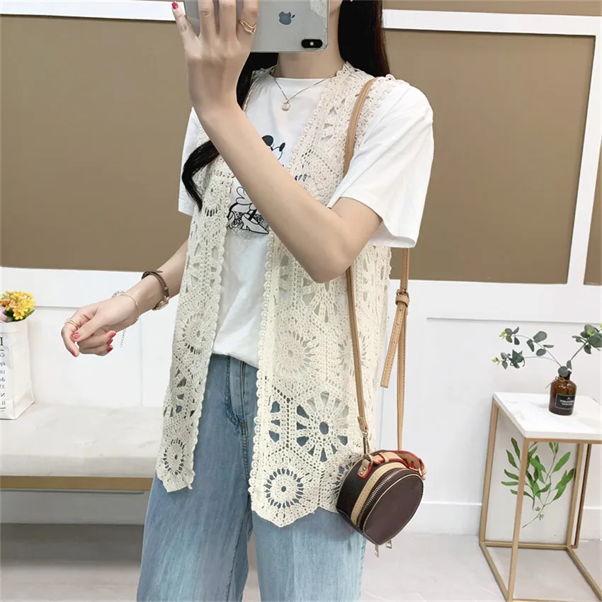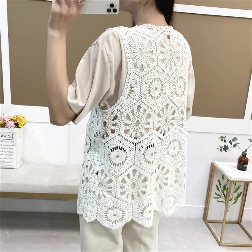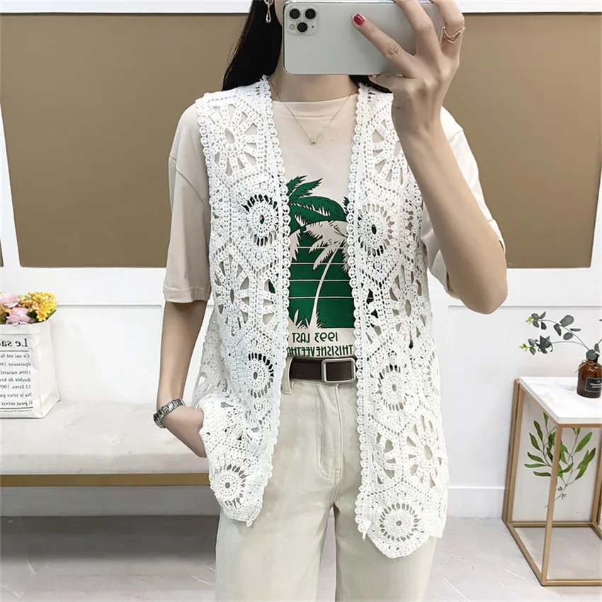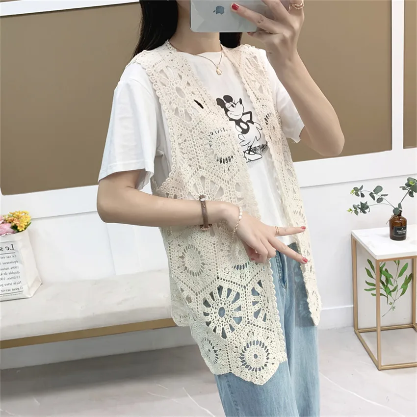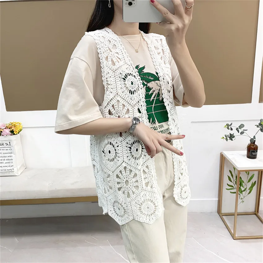 Boho ажурный цветочный вязаный крючком жилет для женщин 2022 богемная Ретро Повседневная куртка кардиган открытый стежок без рукавов жилет Mujer пальто
