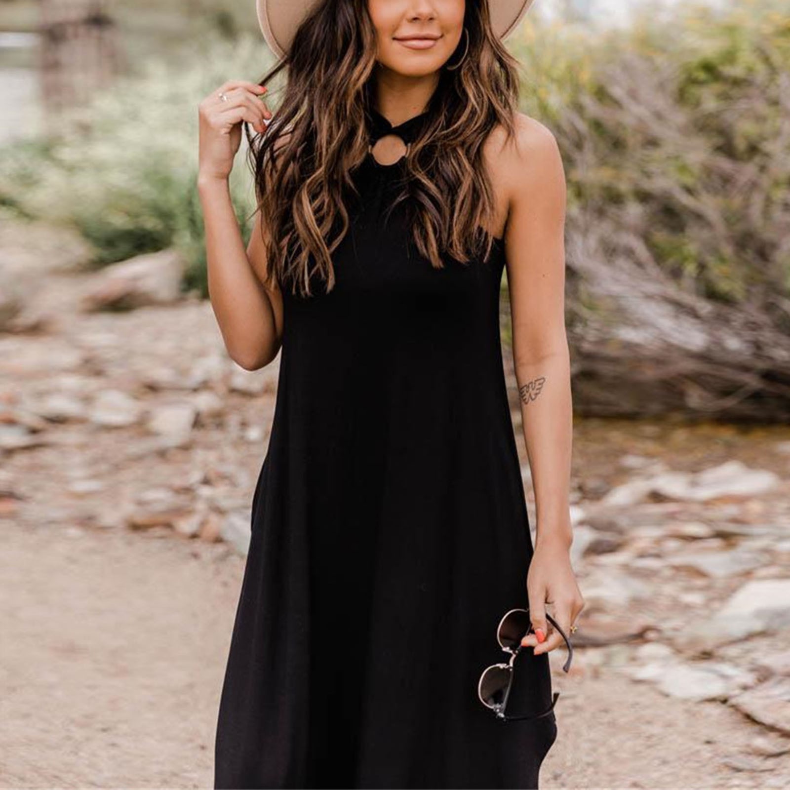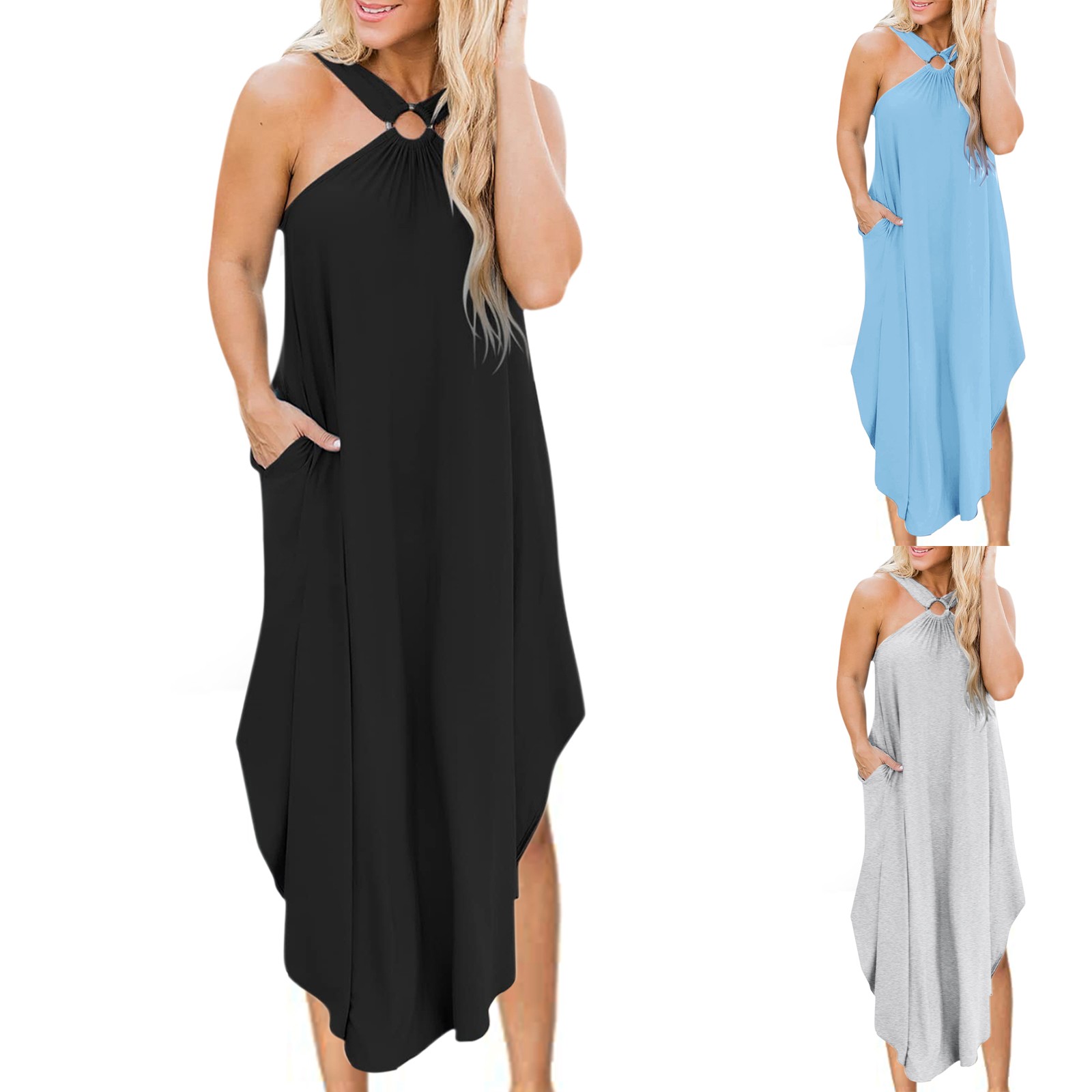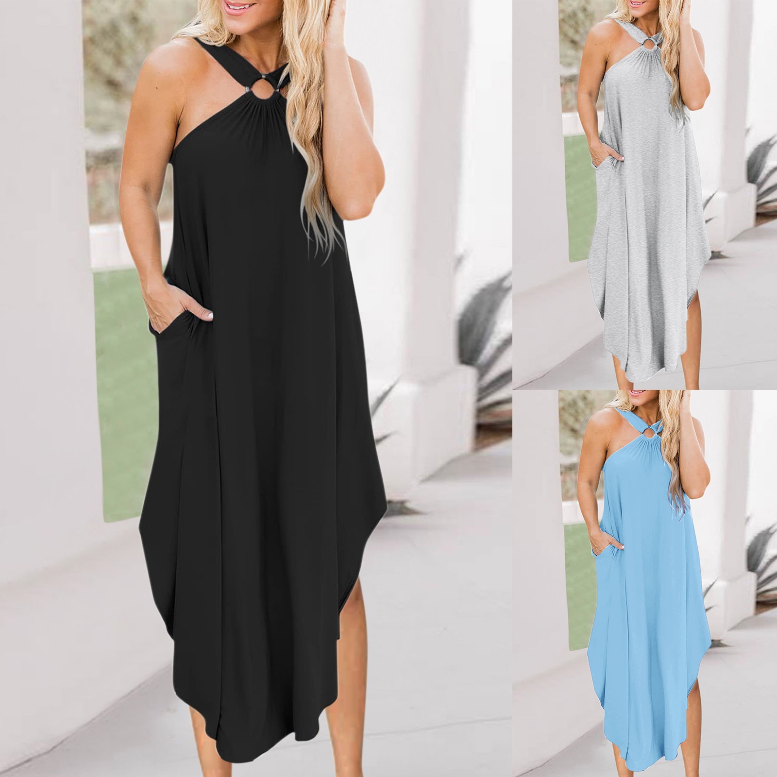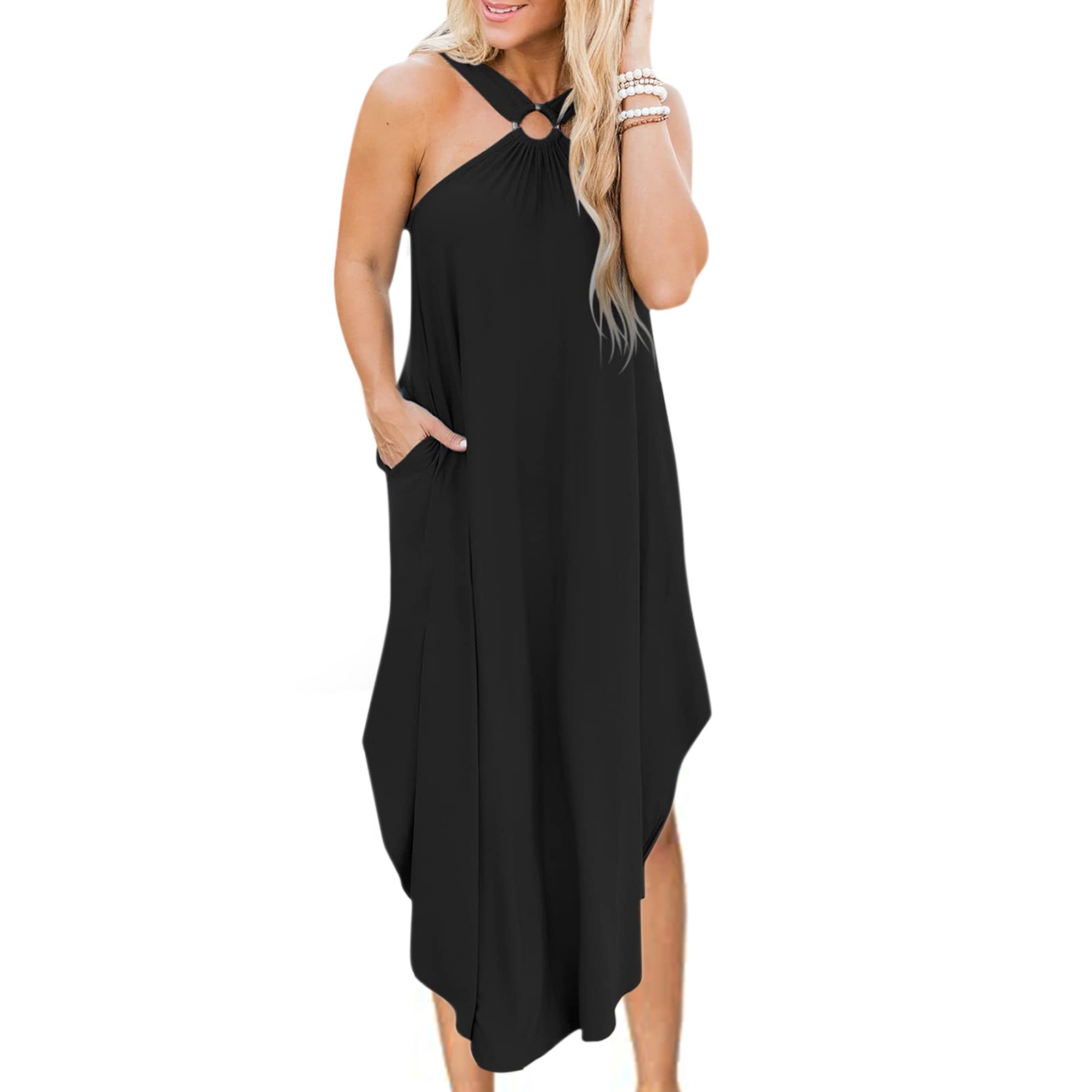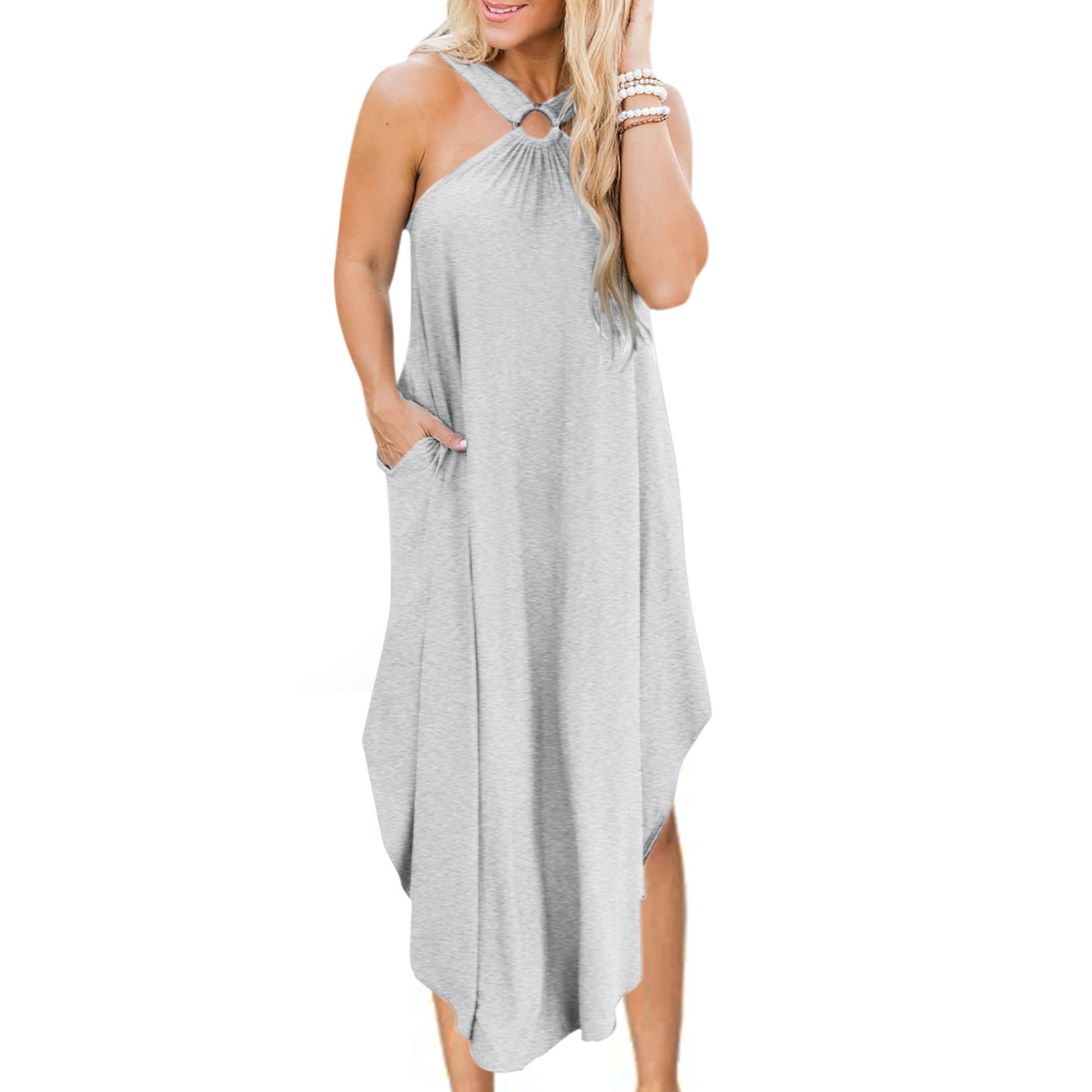 Женское летнее повседневное пляжное платье без рукавов, длинное пляжное платье с карманами