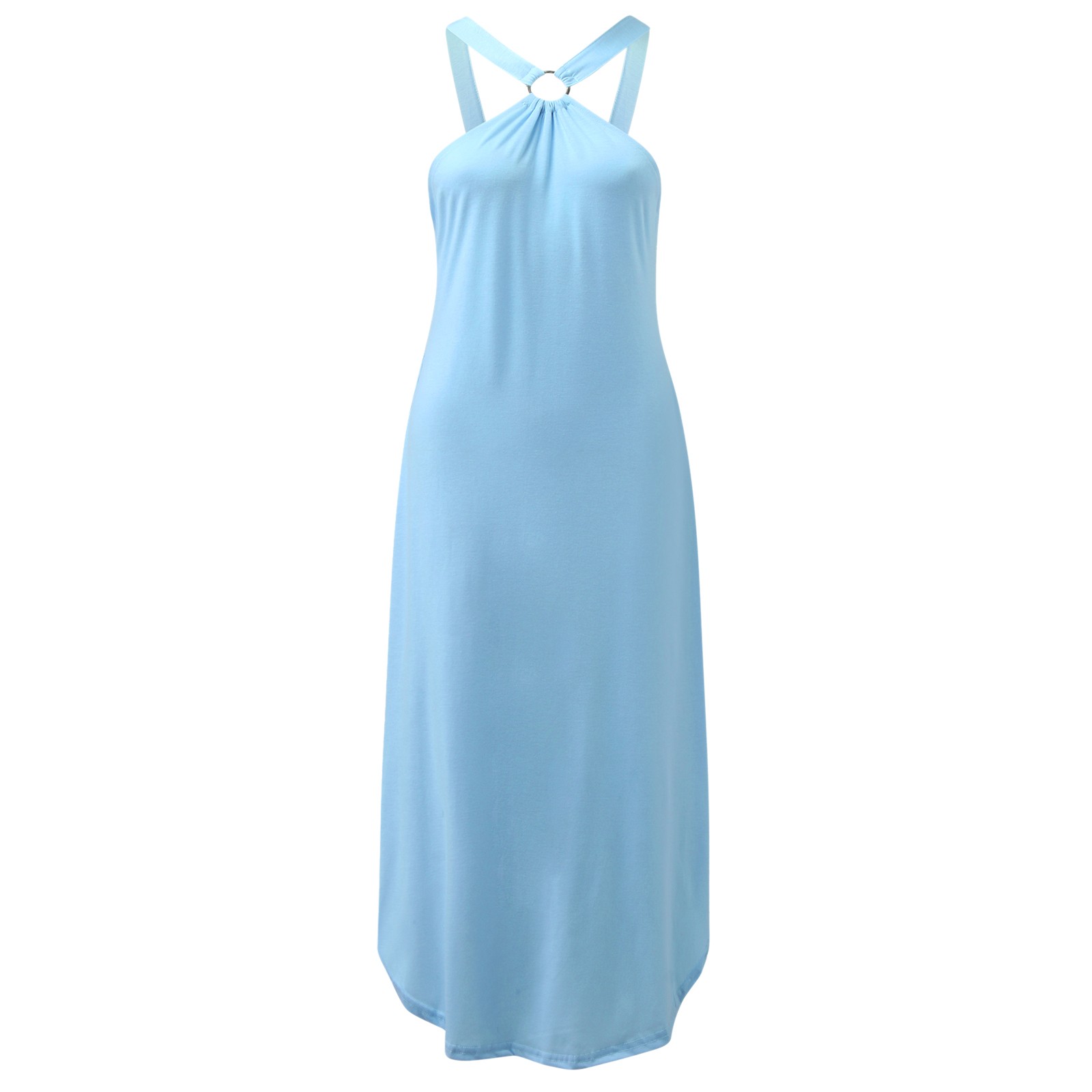 LЭто летнее платье с бретельками спереди и изогнутым подолом с разрезом сбоку. Идеально подходит для путешествий, пляжа, вечерние, отдыха, ежедневного отдыха! Платье с ожерелье "елочка", ожерелье с цветочной монеткой, простой браслет на запястье, клатч на молнии через плечо StellaЛетоСандалии.
