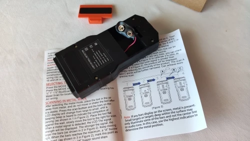 19 October 2022·Show originalReceived in just 10 days, as the announcement indicates. Dispatch quickly. Very good seller. As for the operation, you have to familiarize yourself with its use. You have to test the wall to spare which you want to locate the cable, pipes or the wooden slats you want to find. First you select from the menu the material you want to locate, without being on the wall or floor. Done this step, you progressively approach the detector to the wall. You'll see that the indicator bar starts to increase its value. Not that I 've located the material. It simply detects a density change. Press on the sensitivity button (without moving the detector) and the Bar returns to its zero value. Keep moving the detector closer and you might have to repeat the sensitivity adjustment step. The moment the detector touches the surface, move it smoothly and do not separate it from the wall. Run tests next to a point where you know there's the material you're looking for before you search.