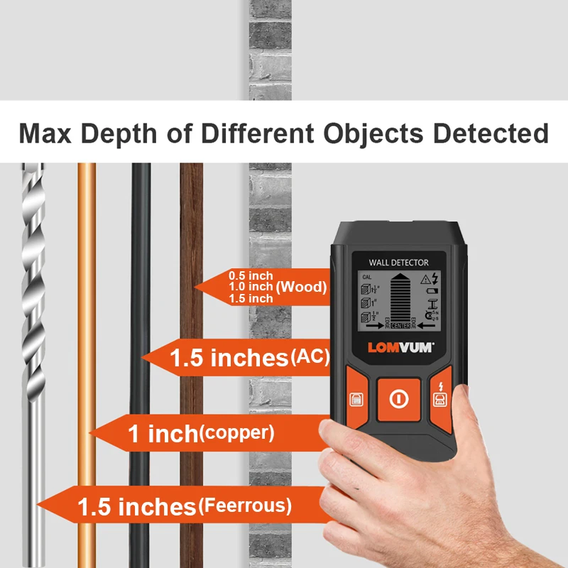 LOMVUM LW102 Metal detector apply for detecting metal hidden in walls, ceilings and floors (reinforced steel, copper pipe), cable; wooden beams, metal, electricity under the plasterboard cable. Make the decoration drilling works safer.Max Depth when Dectect Different ObjectsNOTES:Welcome to buy products from our store. If you buy the T30 model and receive the LW102 model, please don't worry. This is an activity we give back to buyers. We will select lucky buyers to deliver goods randomly. Also, please don't dispute with those who receive the LW102 model. Thank you for your support!