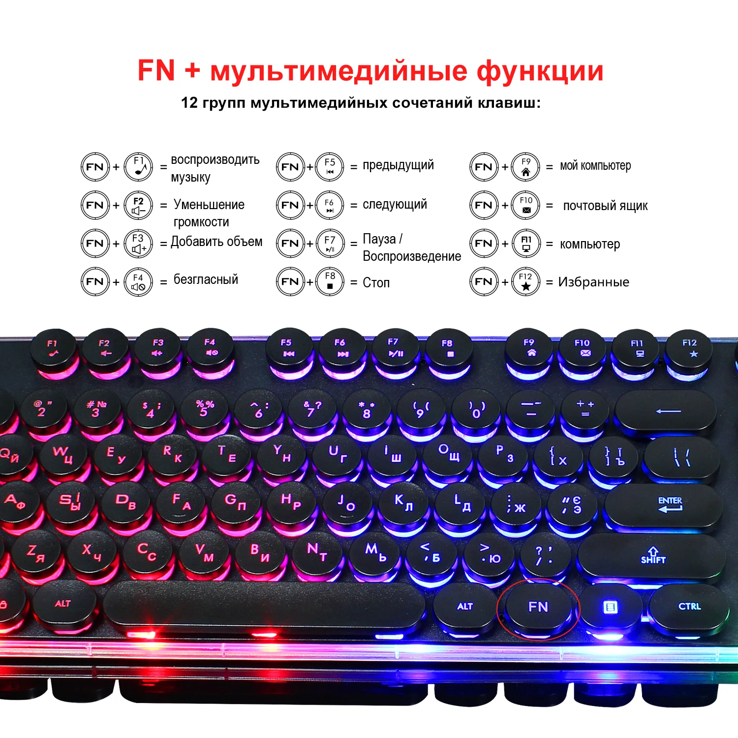 Английская + русская игровая клавиатура мышь комбо USB Проводная светящаяся красочная подсветка комплект геймера Водонепроницаемая мультимедийсветодиодный ная для ПК