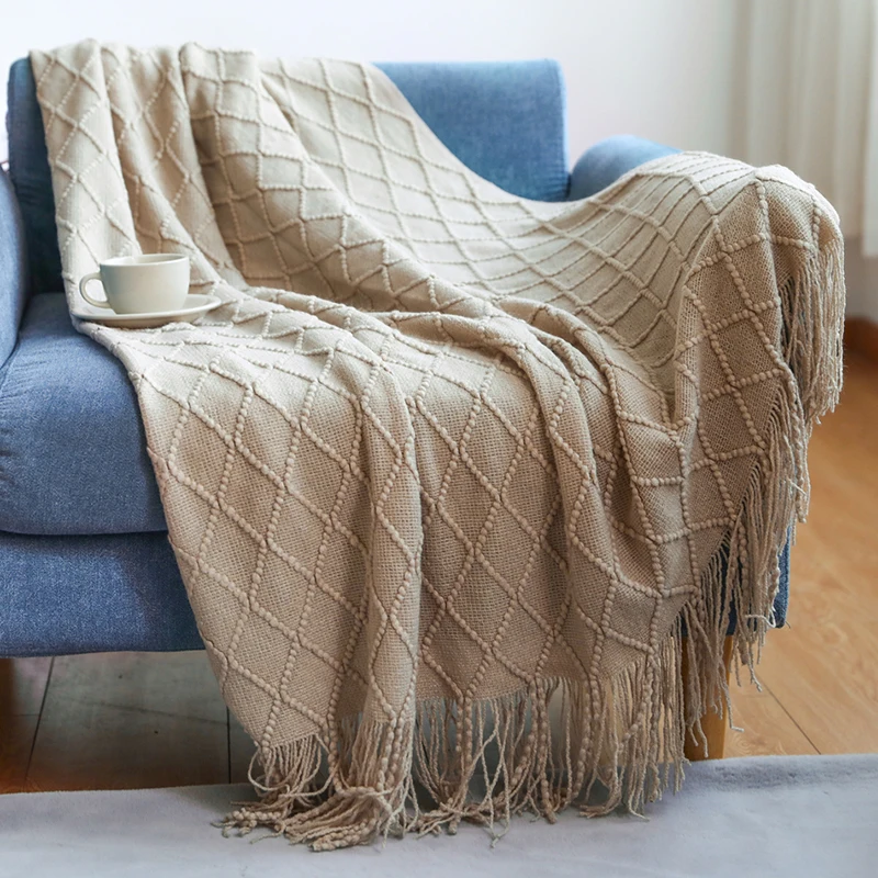 Вязаное одеяло, плед одеяло, одеяло для дивана, кровати, трикотажные ткани, диван, тисненое одеяло, покрывало с кисточками