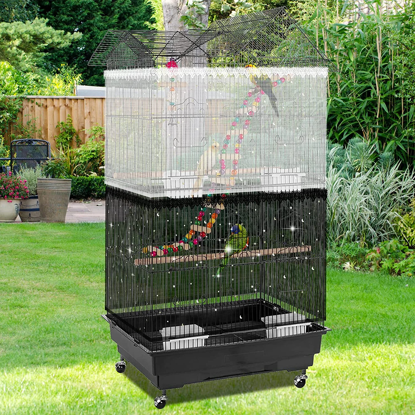 🐦Высококачественный материал с рисунком звезды-Сетчатая клетка для птиц изготовлена из высококачественной зашифрованной нейлоновой сетки, мягкая и воздушная ткань обеспечивает циркуляцию воздуха. Облегченная защита семян птицы обеспечивает циркуляцию воздуха, обеспечивает блики барьер, чтобы сделать уютное место для сна.