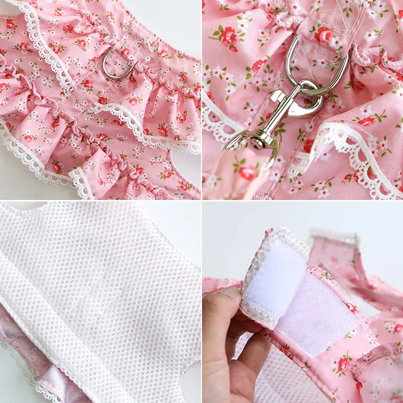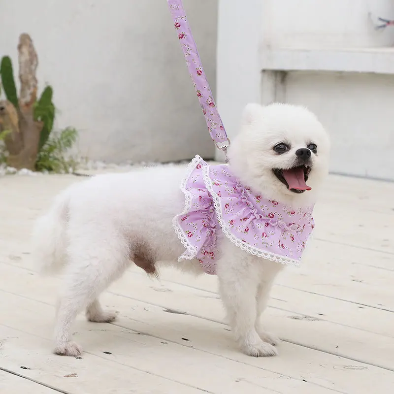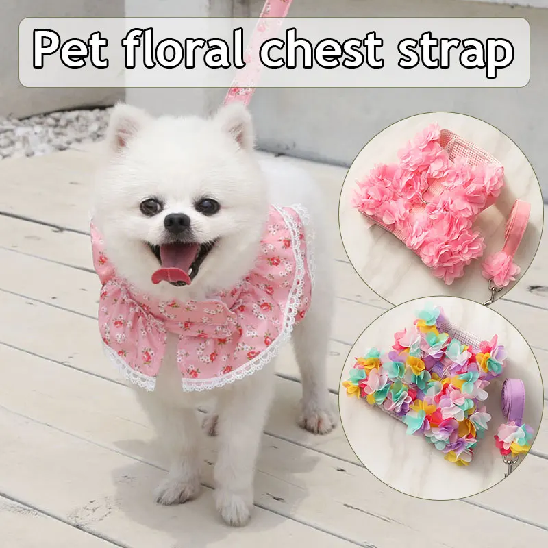 Нагрудный ремень для домашних животных, полиэфирный материал, приятный для кожи и удобный, не вредит коже питомца. Небольшой цветочный дизайн, модный и классический, свежий и милый. Доступны также разные цвета.