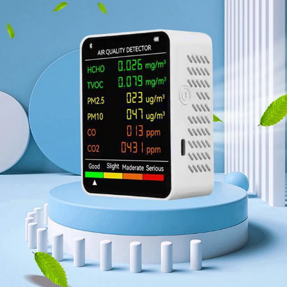 Приходите и попробуйте этот многофункциональный детектор качества воздуха нового типа, по сравнению с другими датчики качества воздуха, этот детектор может показать вам 6 различных результатов обнаружения в то же время, и функция обнаружения более комплексная. Если вы ищете новый монитор качества воздуха, попробуйте, он вас не подведет.