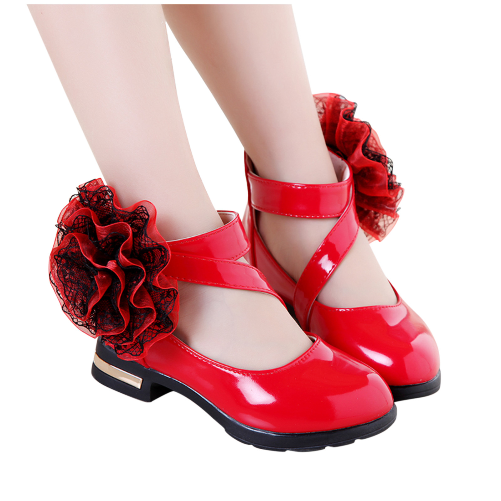 Детская кожаная обувь с цветочным принтом для маленьких девочек; Мягкие туфли принцессы для танцев