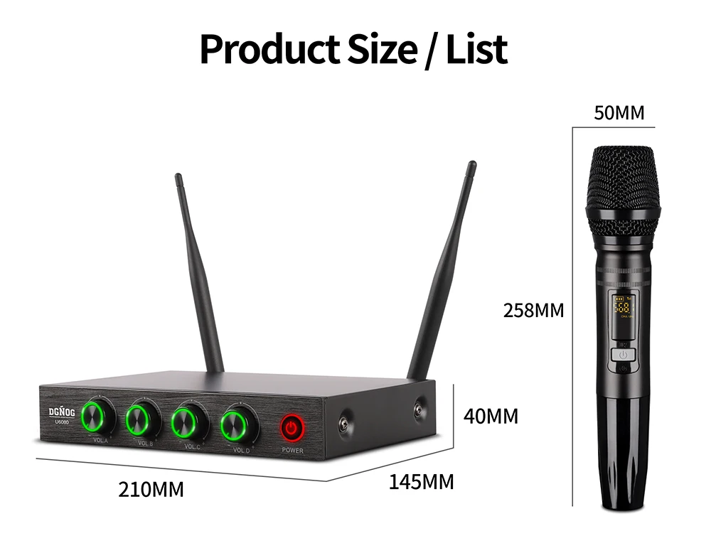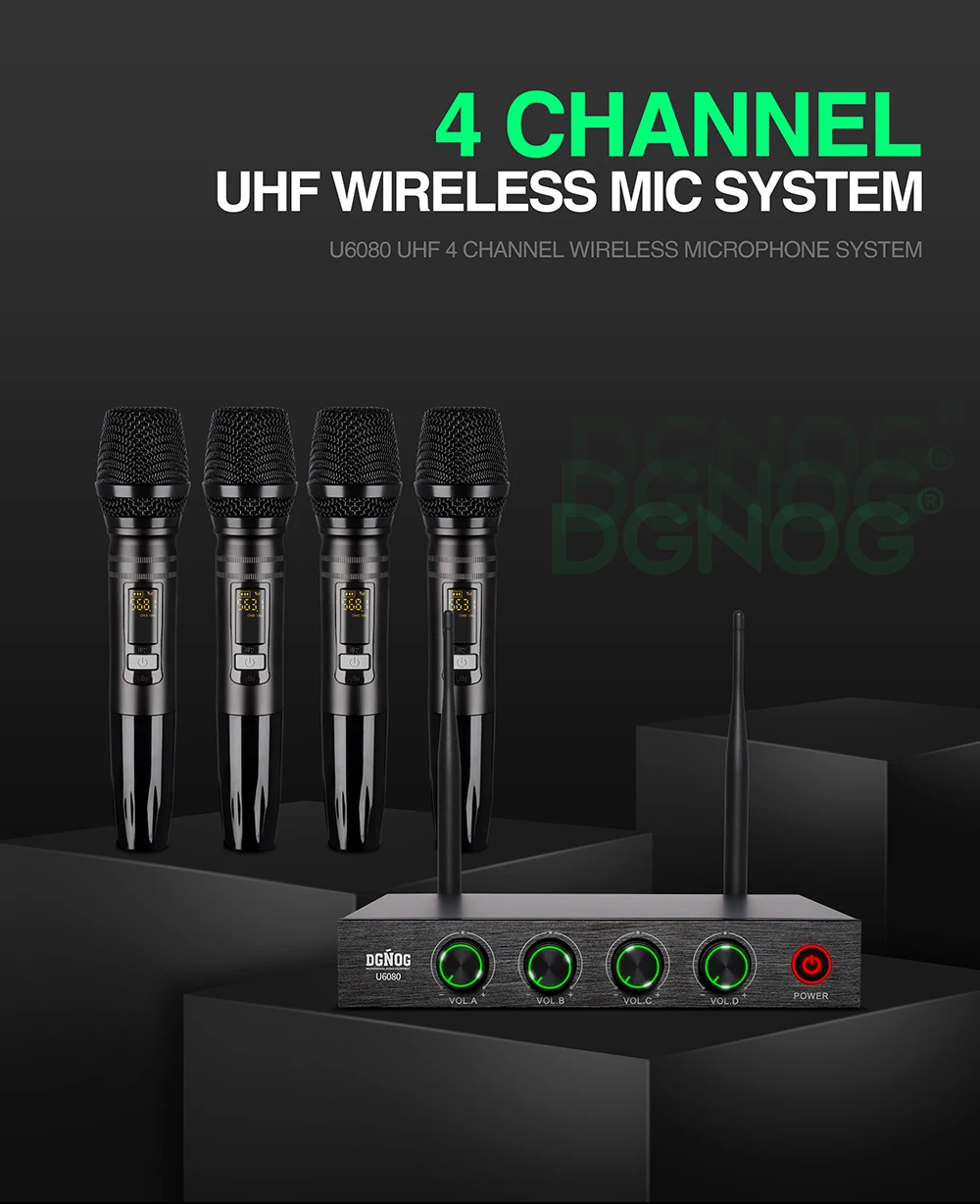 【Чистый и качественный звук-U6080 Профессиональный 4 канальный Беспроводной микрофон Системы ваши запросы даем профессиональные суперкардиоидный динамический капсулы, Системы может воспроизводить обеспечивает высокое качество, чистый и полный звук. Для караоке, домашние вечерние, DJ, свадебные, церковные.