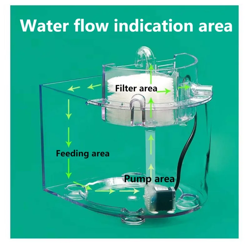 Waterfall outlet, silent filtration, ecological circulation, transparent outlet, promote water circulation, silent submersible pump, 2.5W low energy consumption, installation method, ecological circulation