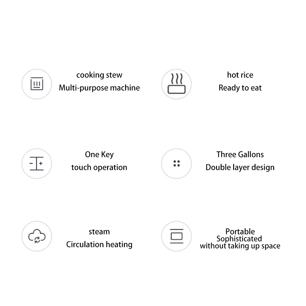 Функция использования: Приготовление Риса, горячих блюд, супа, паром, Приготовление Риса за 5 минут, приготовление 200 г риса примерно за 20 минут