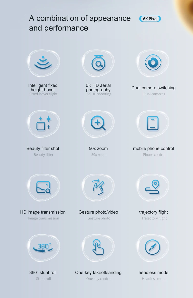 Вверх/вниз, вперед/назад, влево/вправо, боковой f светильник, трехуровневый f светильник, светодиодный светильник, Безголовый режим, автоматическая кнопка возврата, режим удержания высоты, wiFi FPV