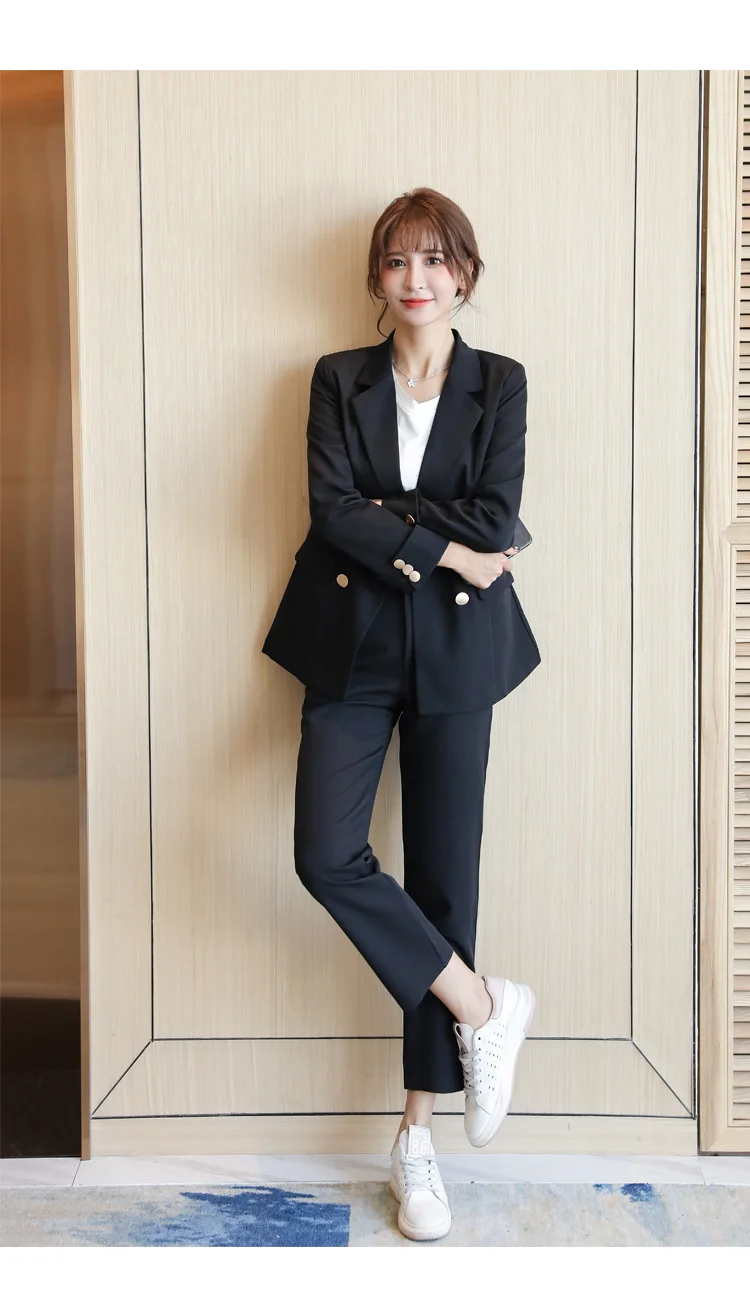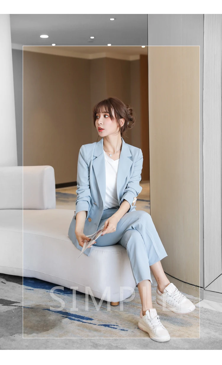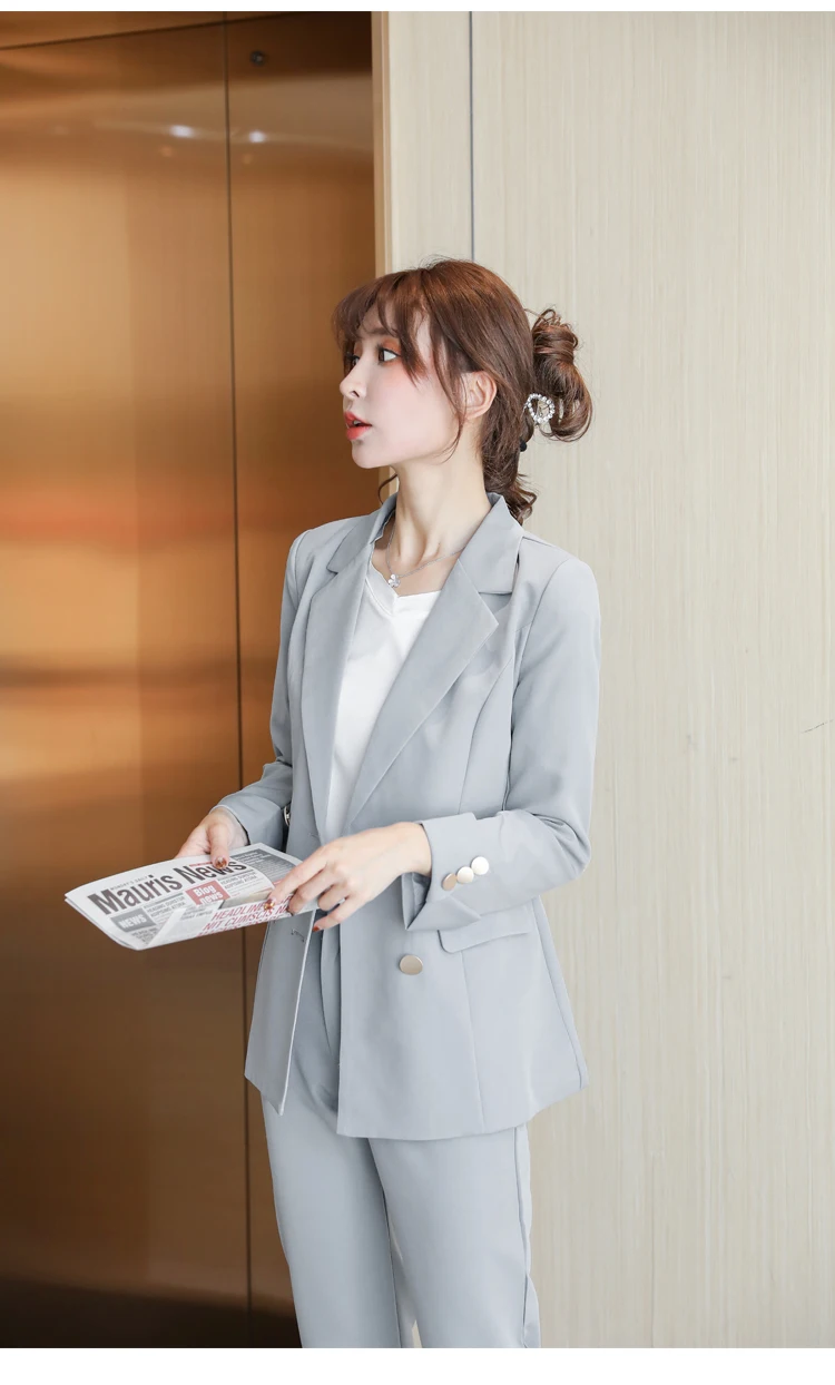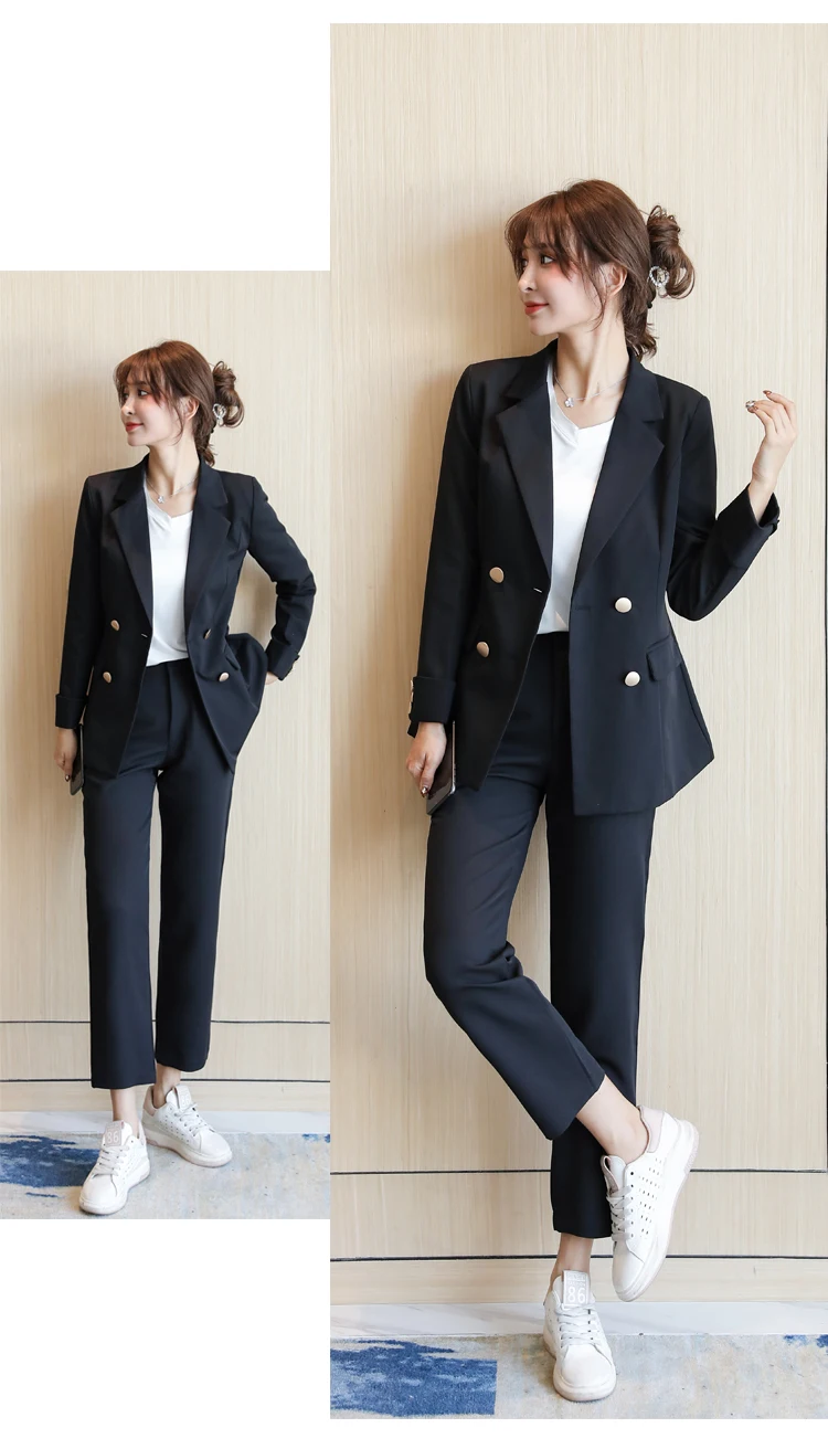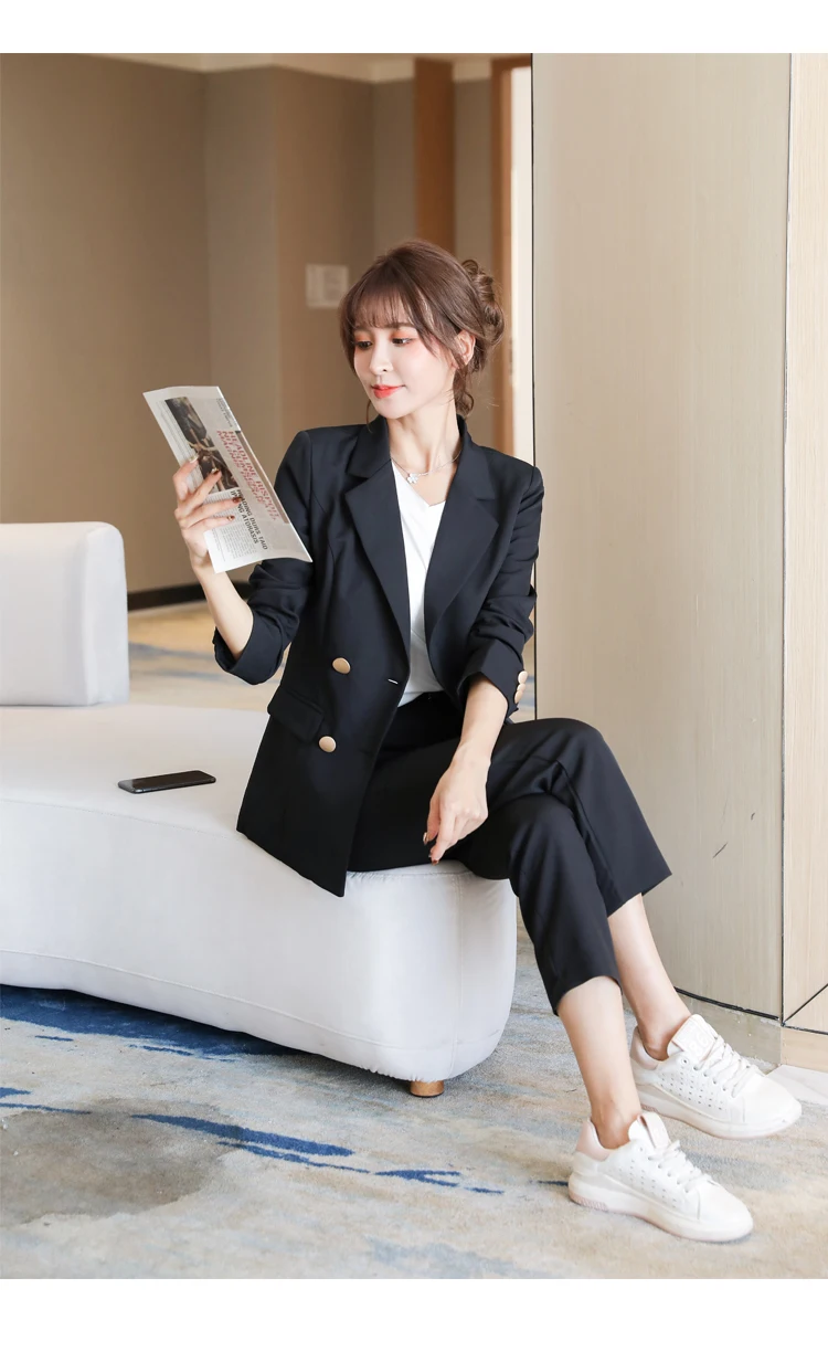 Женский весенне-осенний элегантный Блейзер брючный костюм 2022 офисный Женский Повседневный деловой комплект из 2 предметов Женская модная рабочая одежда брюки костюм