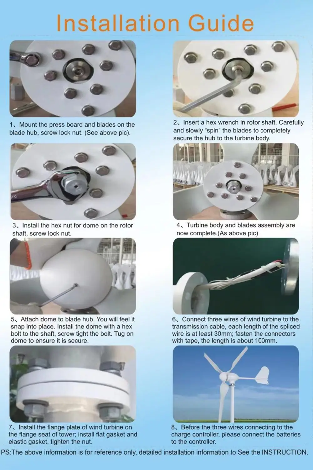 1. Ветровая турбина 1 комплект (ступица, хвост, лезвия, генератор, капот, болты и гайки)
