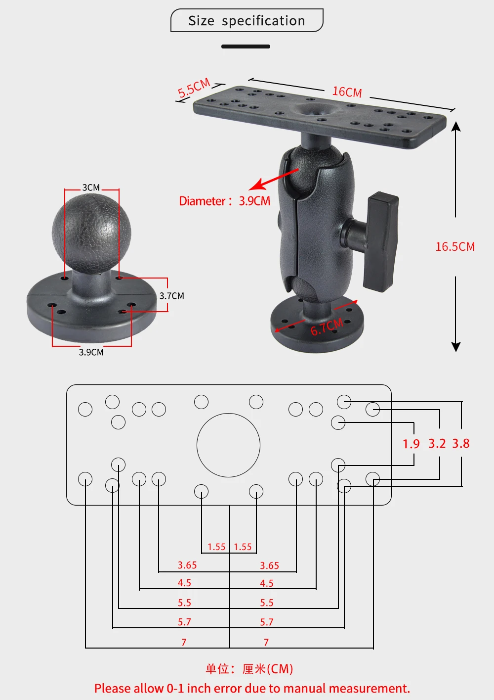 ④ Эту модель необходимо зафиксировать винтами M5, и несколько отверстий предназначены для подгонки к различным шлицям для рыболокаторов, что очень практично.