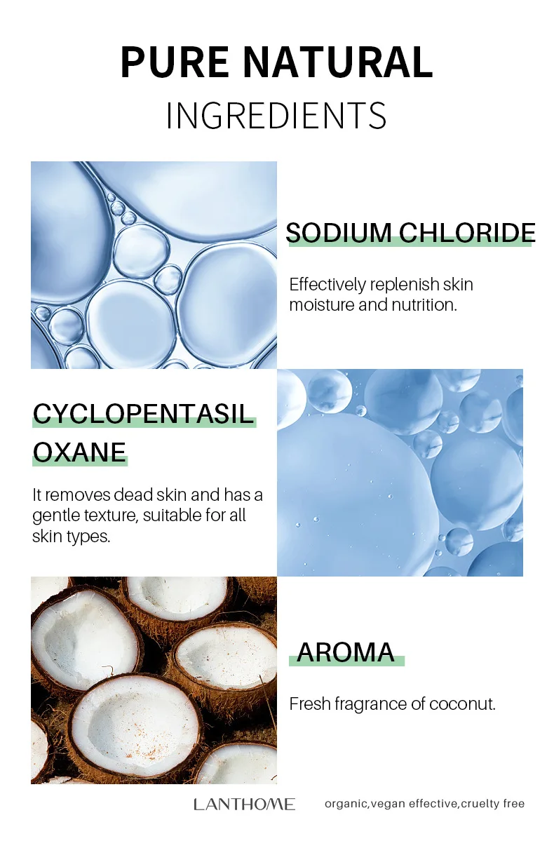 Сладкий запах: Этот морской солевой скраб не только делает вашу кожу мягкой и более молодой, но и обладает очень сладким ароматом. После использования этого кокосового масла вы будете хорошо выглядеть и чувствовать запах. Можно использовать как скраб для лица, скраб для рук, скраб для ног.