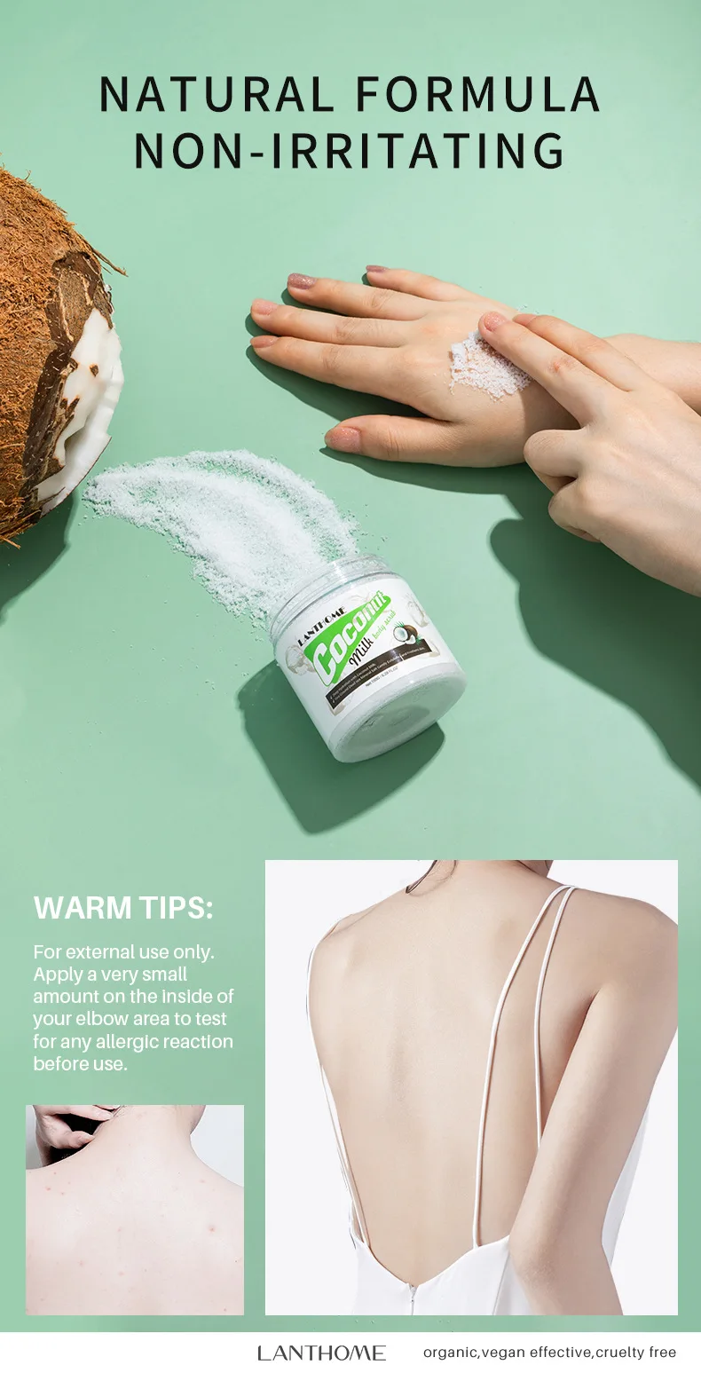 Потрясающие все натуральные ингредиенты: Этот кокосовый молочный скраб для тела обладает удивительным количеством кокосового молока, оливкового масла, масла сладкого миндаля, морской соли, масла грейпса, витамина е, масла авокадо и многое другое!