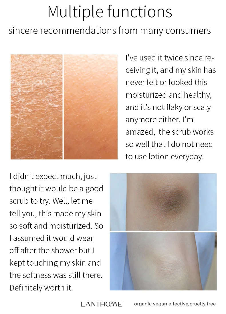 Защищает кожу: не только этот отшелушивающий крем для тела очищает и увлажняет кожу, но и укрепляет вашу кожу от будущих повреждений от солнца.