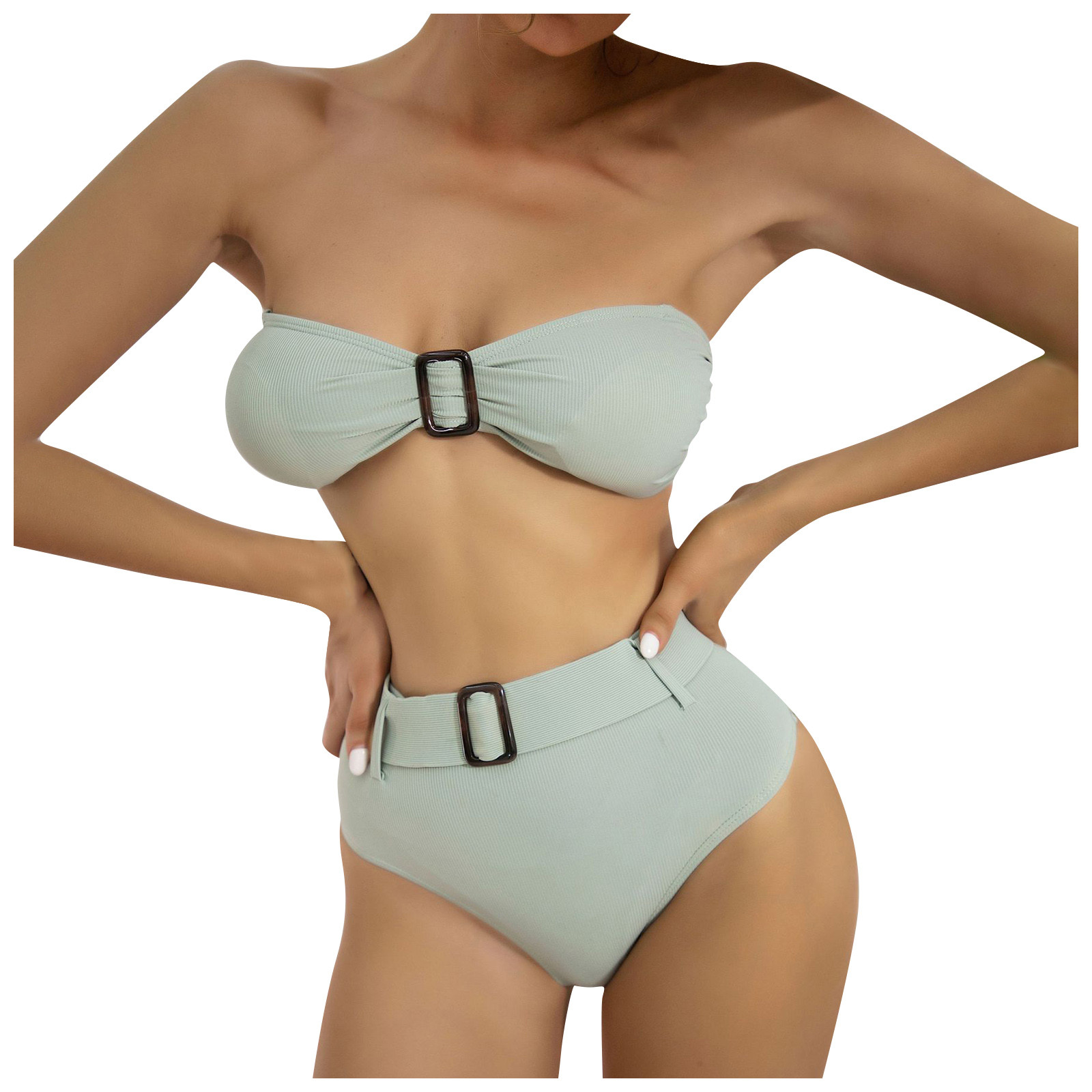 Модный женский однотонный сексуальный купальник-бикини с высокой талией