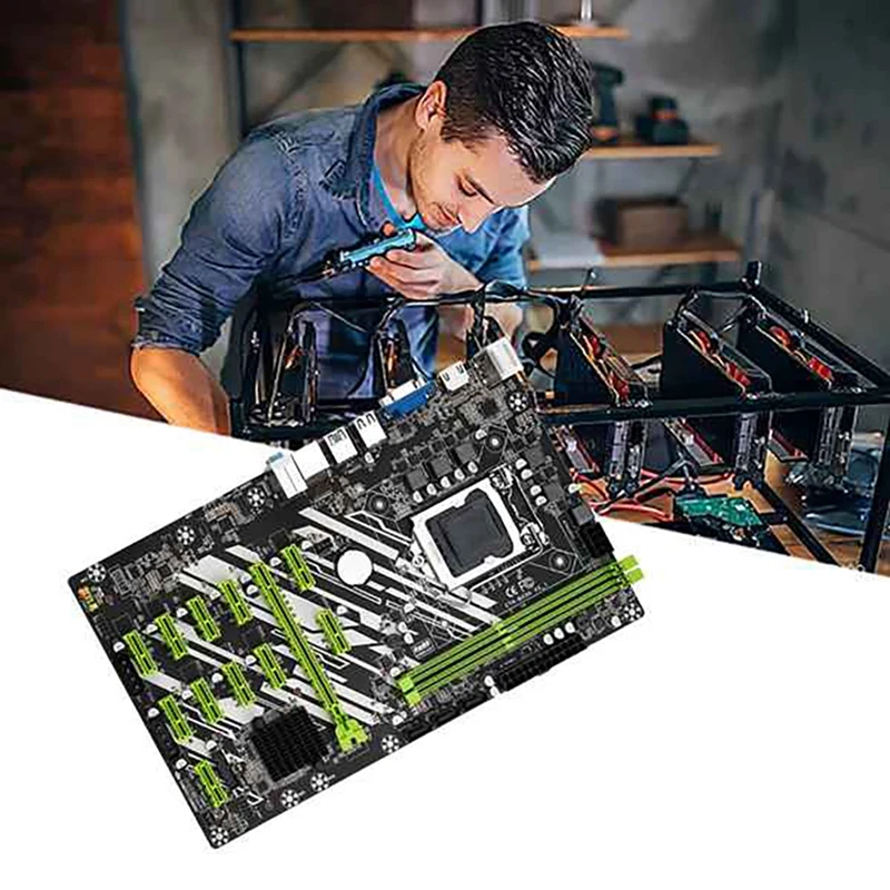 B250 BTC горная материнская плата с охлаждающим вентилятором процессора 12 PCI-E слоты для видеокарт LGA1151 DDR4 ECC RAM SATA3.0 USB3.0