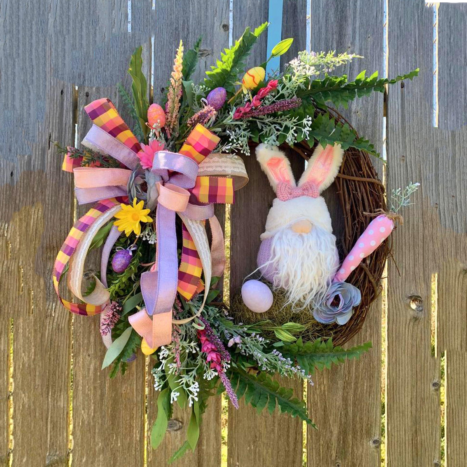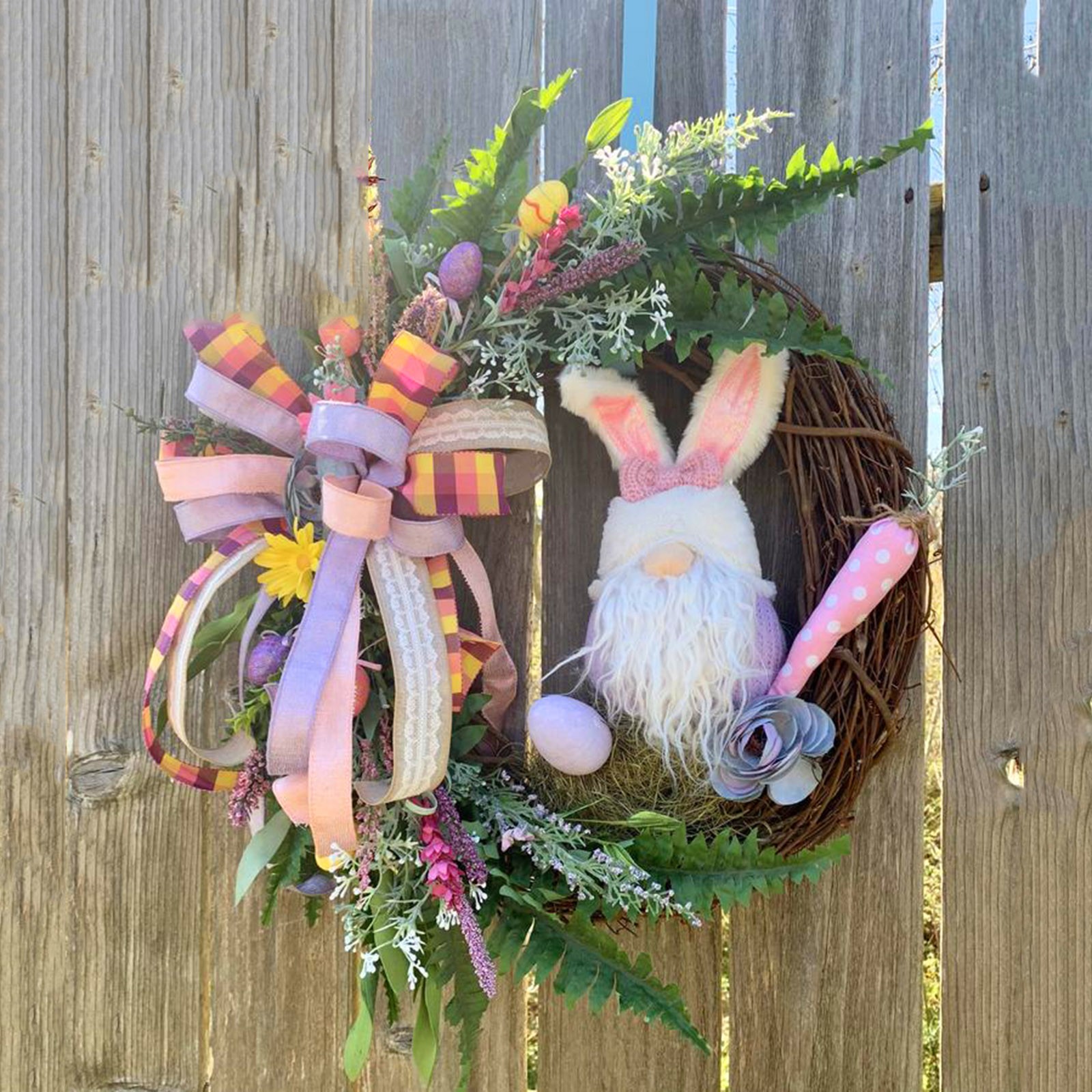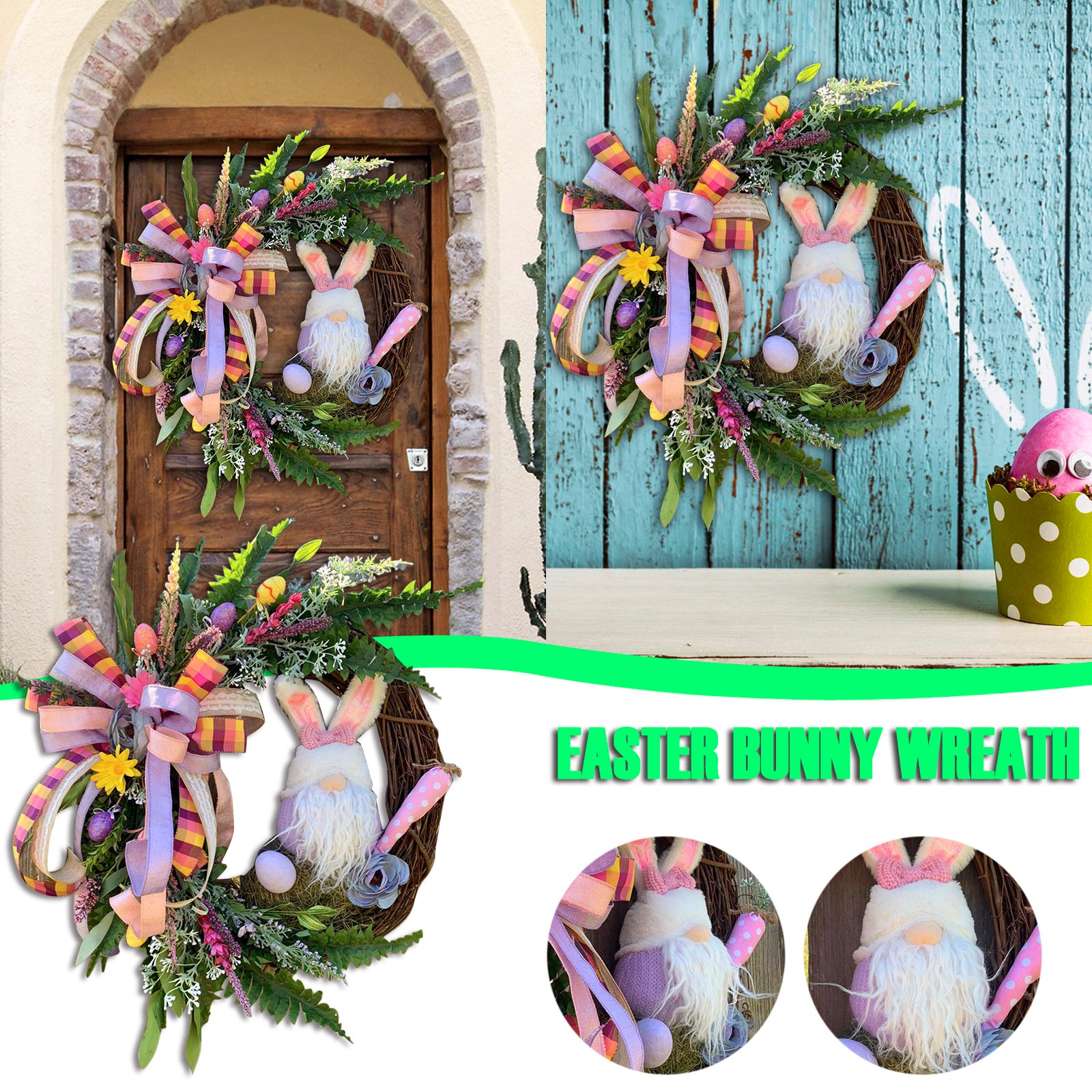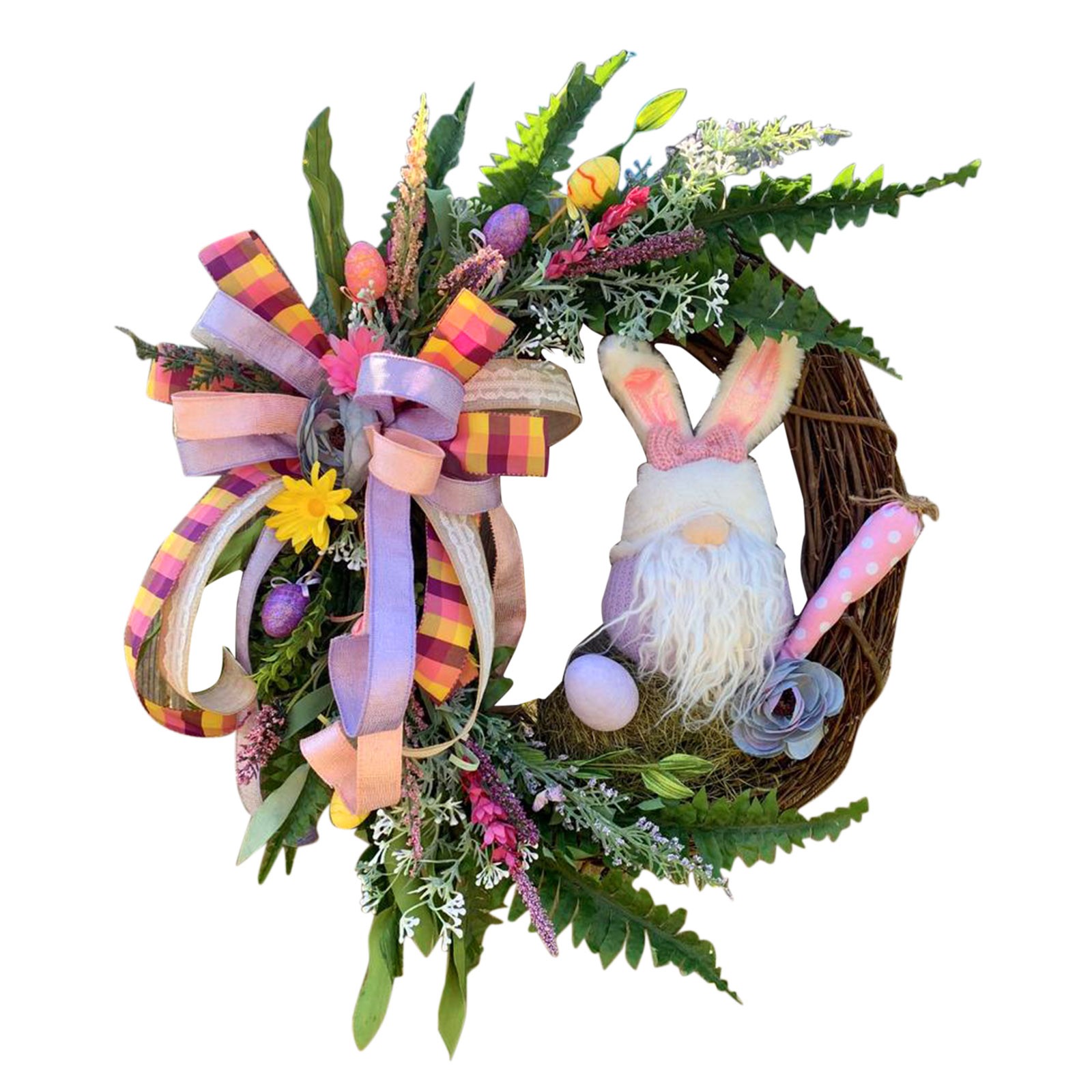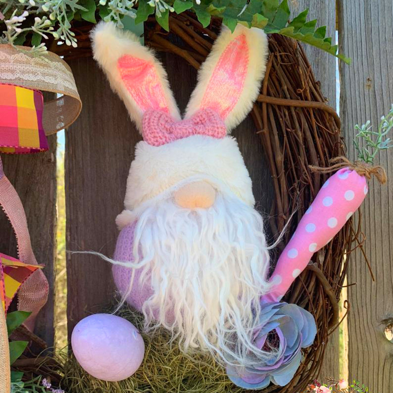 Suitable size -- Easter Bunny /Gnome wreath decor is an easy way to decorate your home or business for Easter. Both adults and kids will love this Easter party supplies.Spring and summer colors make this a beautiful wreath for Easter Wreath, Valentines Day Wreath, and Mothers Day Wreath gifts.