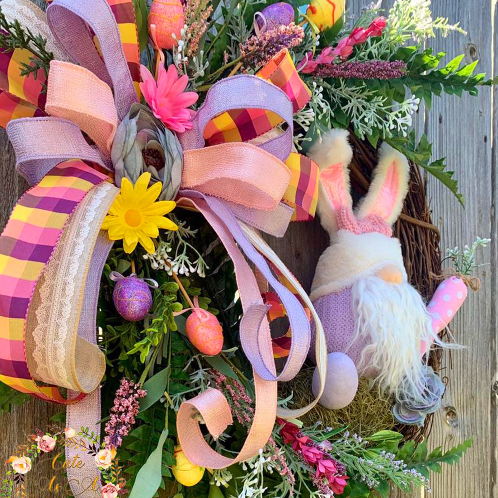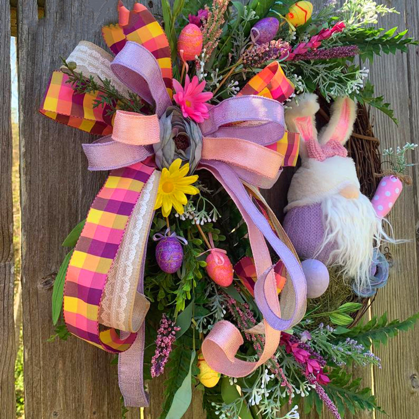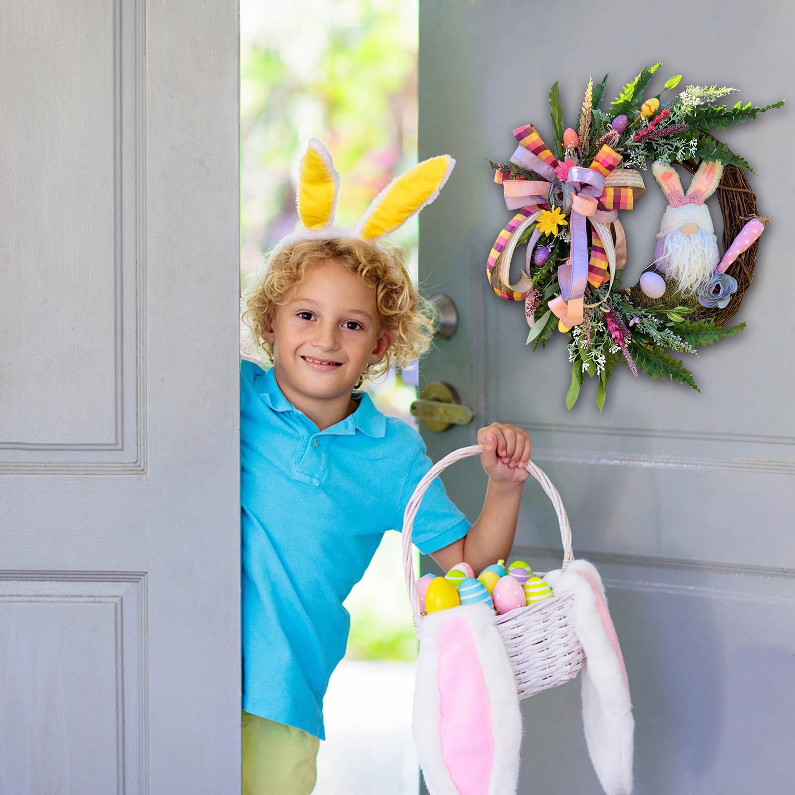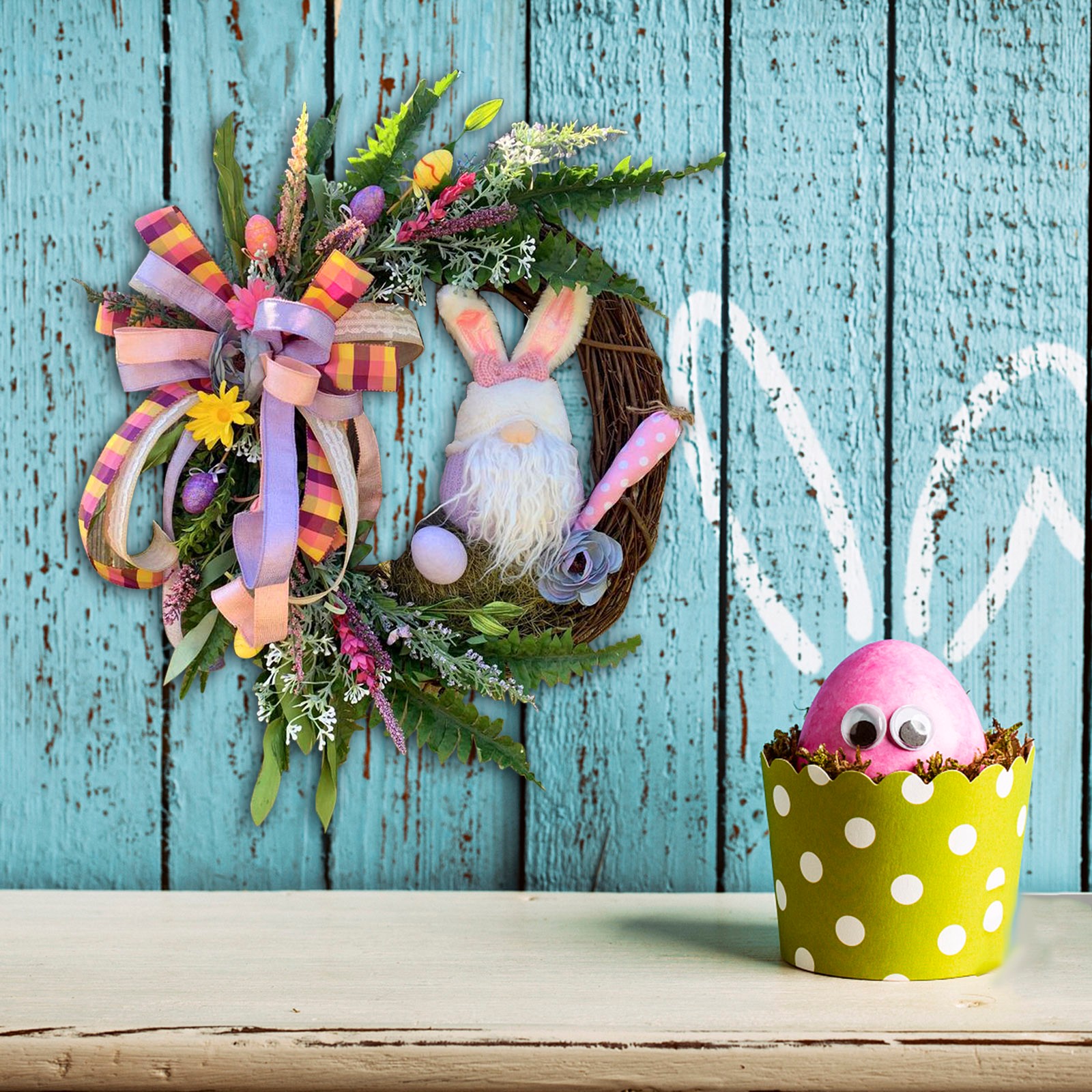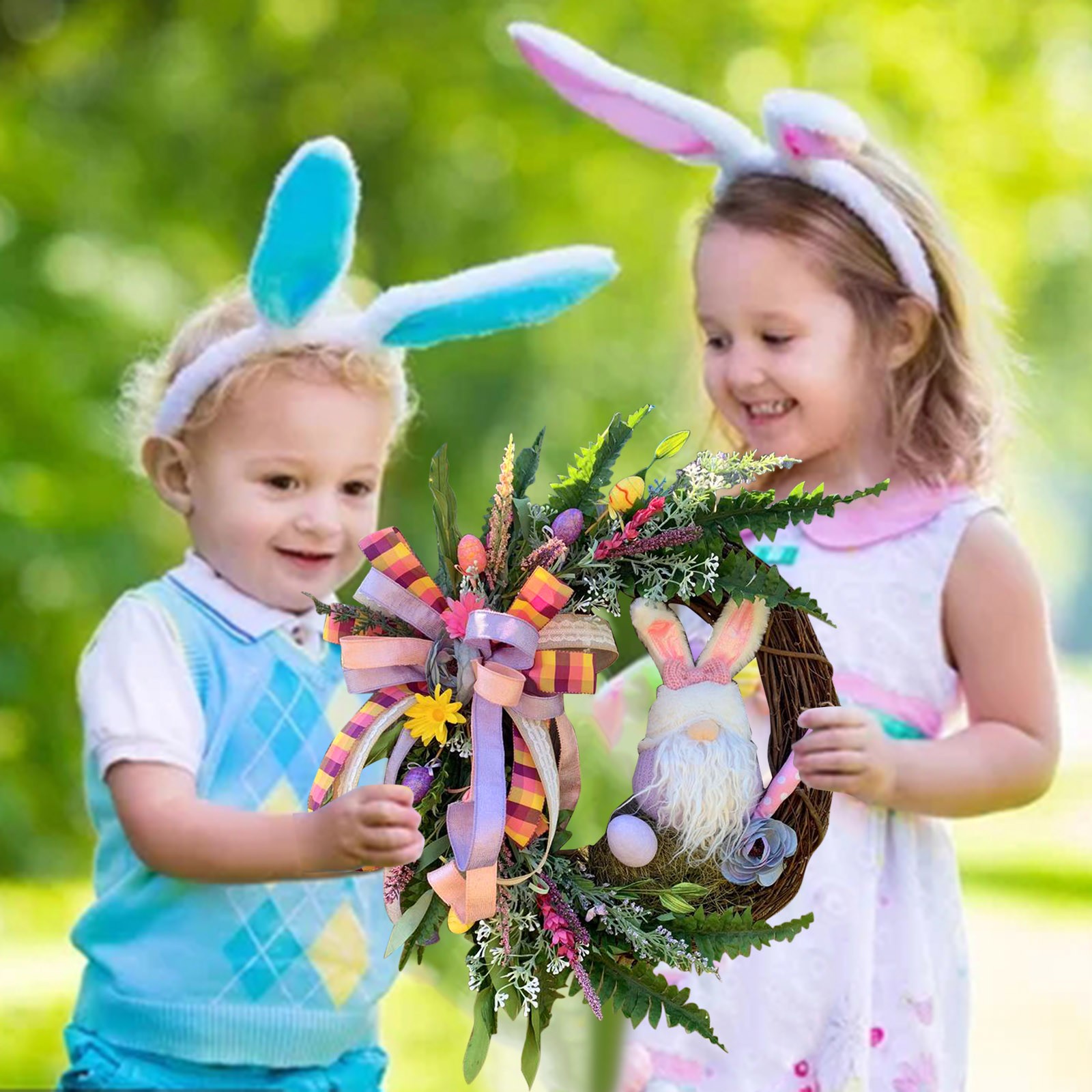Suitable size -- Easter Bunny /Gnome wreath decor is an easy way to decorate your home or business for Easter. Both adults and kids will love this Easter party supplies.Spring and summer colors make this a beautiful wreath for Easter Wreath, Valentines Day Wreath, and Mothers Day Wreath gifts.