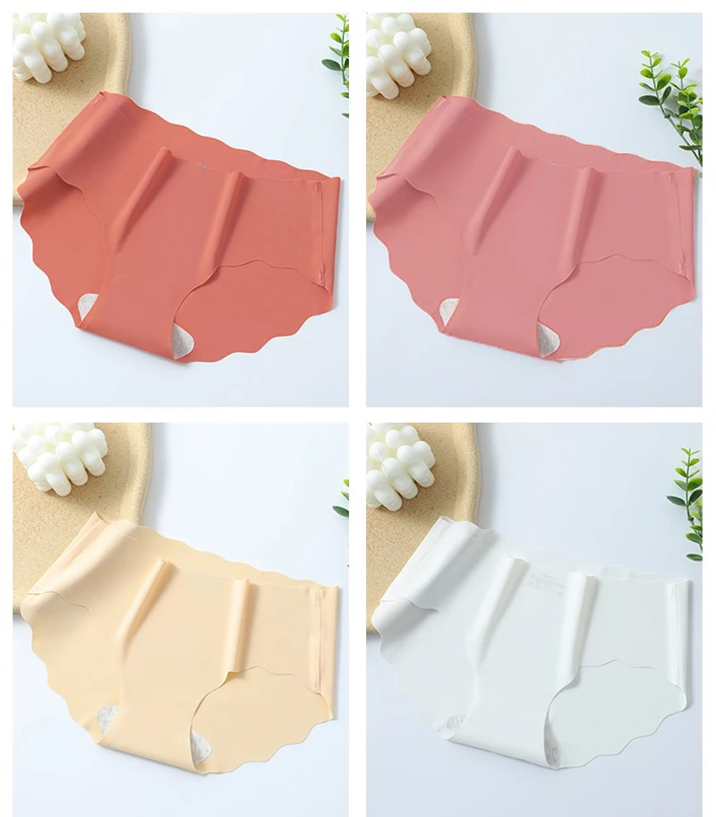 2 шт./комплект, женские трусы, однотонное бесшовное нижнее белье, дышащие женские трусы со средней талией, шелковые трусы с рюшами, женское нижнее белье