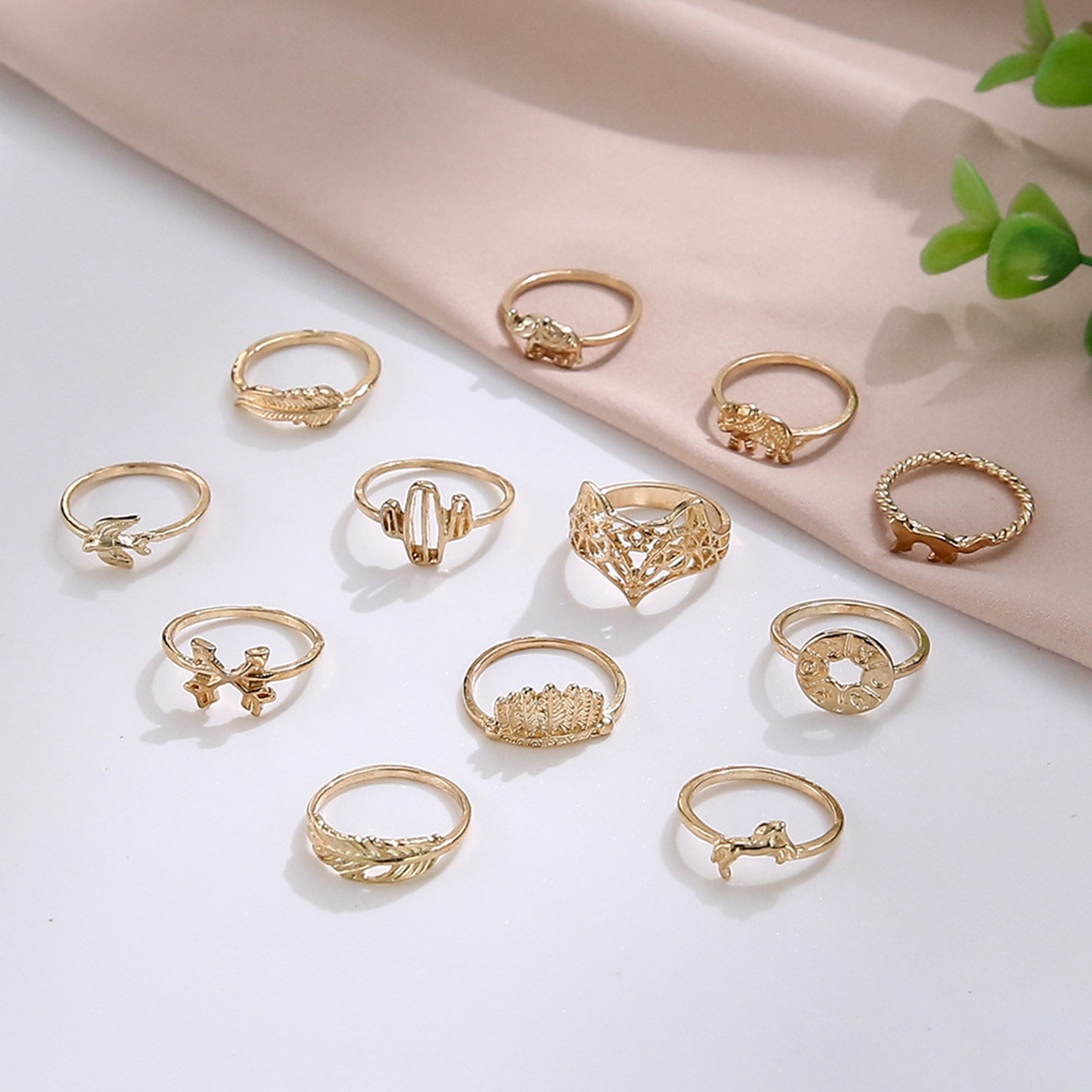 Женское кольцо в стиле ретро с вырезами и изображением животных, 12 шт., модное Ювелирное кольцо, Золотое кольцо