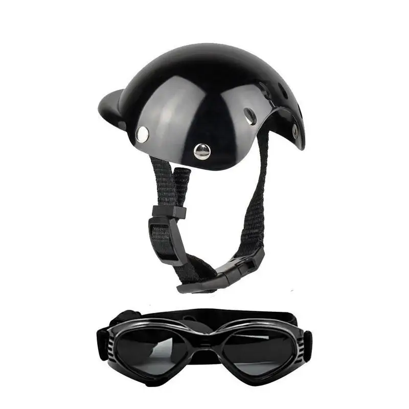 Комплект: 1 * маленький шлем для собаки + 1 * лыжные очки
