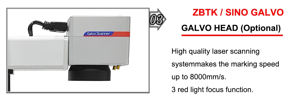 3. Головка ZBTK / SINO GALVO (опционально):Высокоскоростное сканирование. Точный и тонкий эффект маркировки.