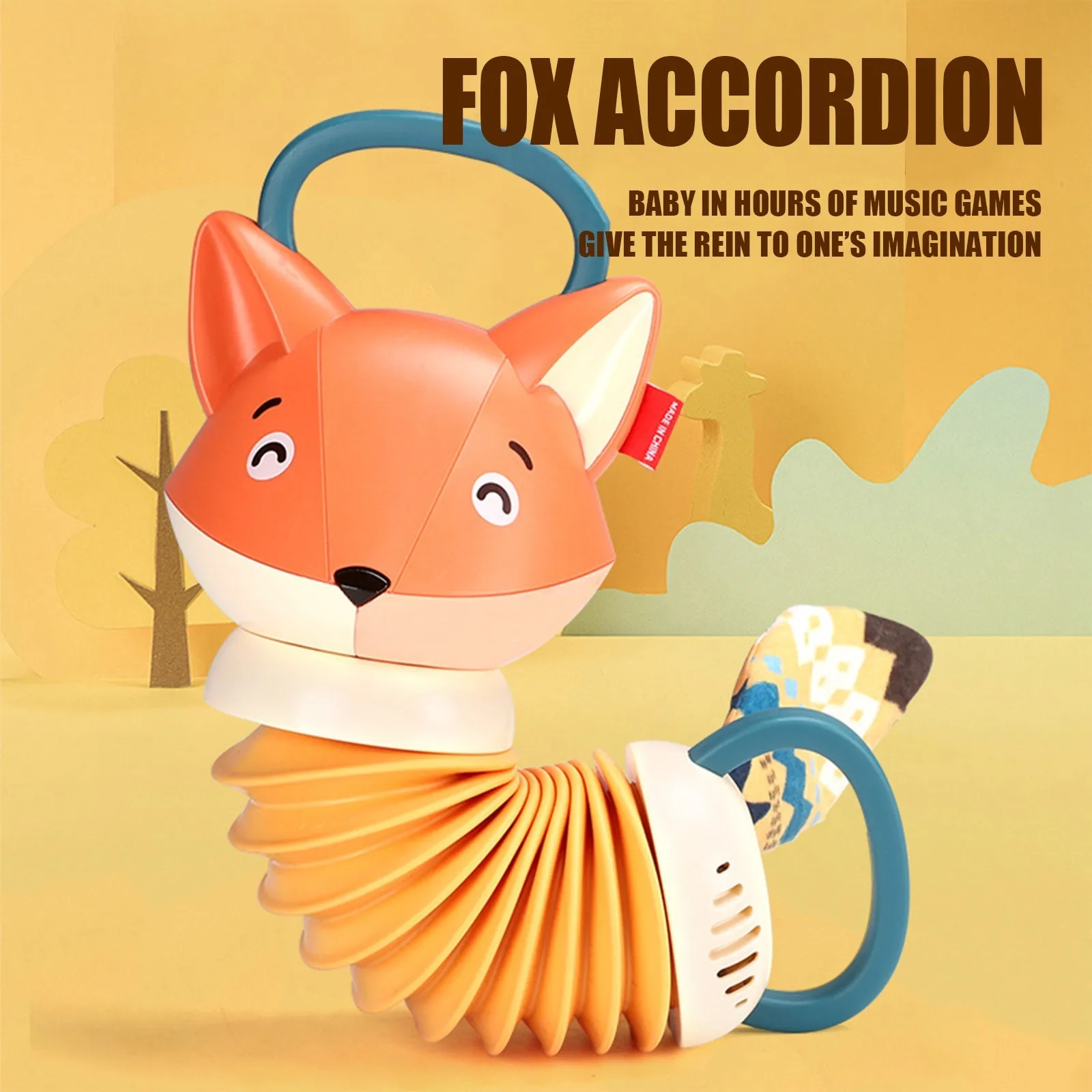 4. Имитационная музыкальная игрушка с аккордеоном: очаровательная мультяшная лиса с питанием от аккумулятора для активного воспроизведения музыки в нескольких режимах, включение кнопки «назад» и нажатие на нос маленькой лисы для переключения режима звука, встроенный в различные звуки, чтобы принести ребенку Забавный и удобный музыкальный мир.