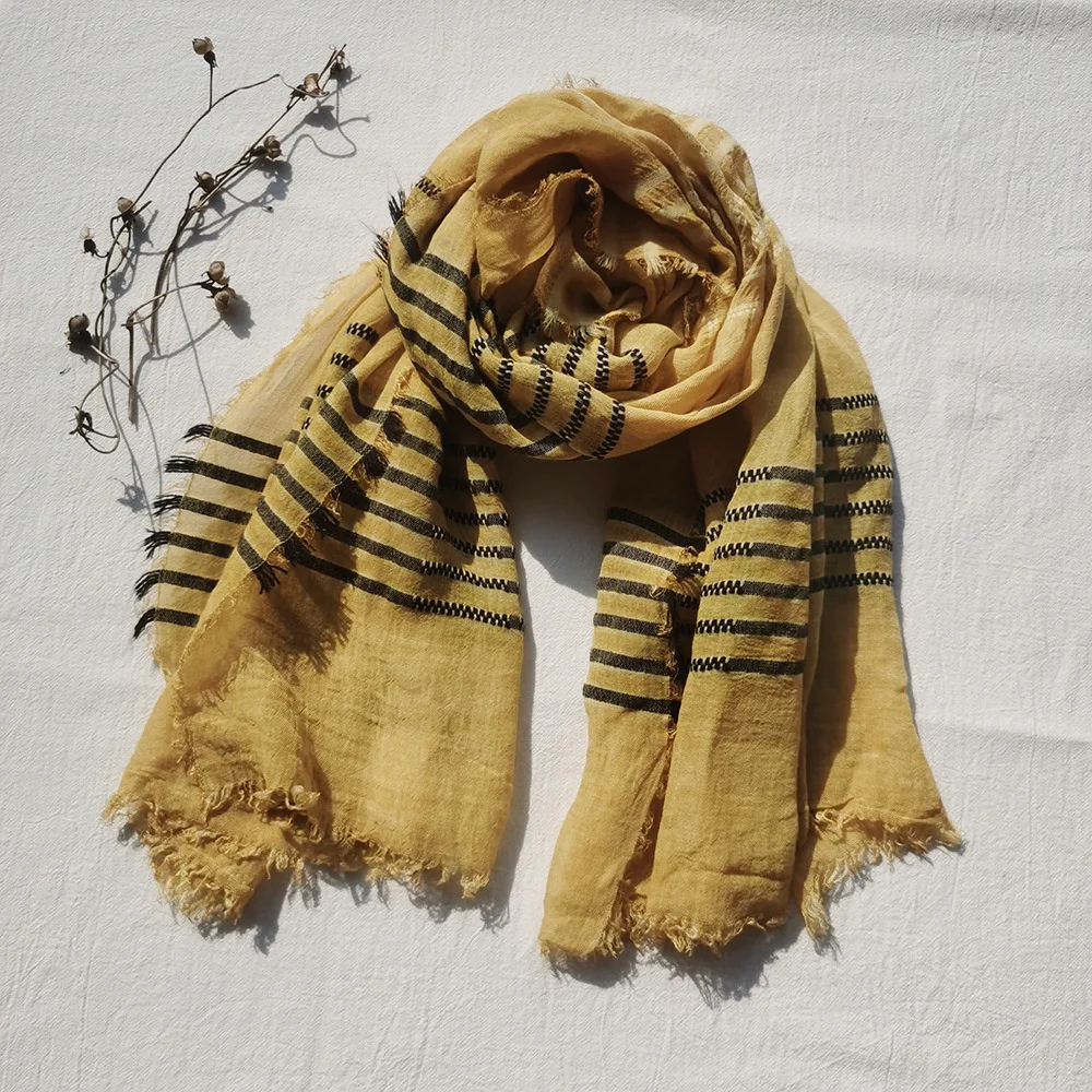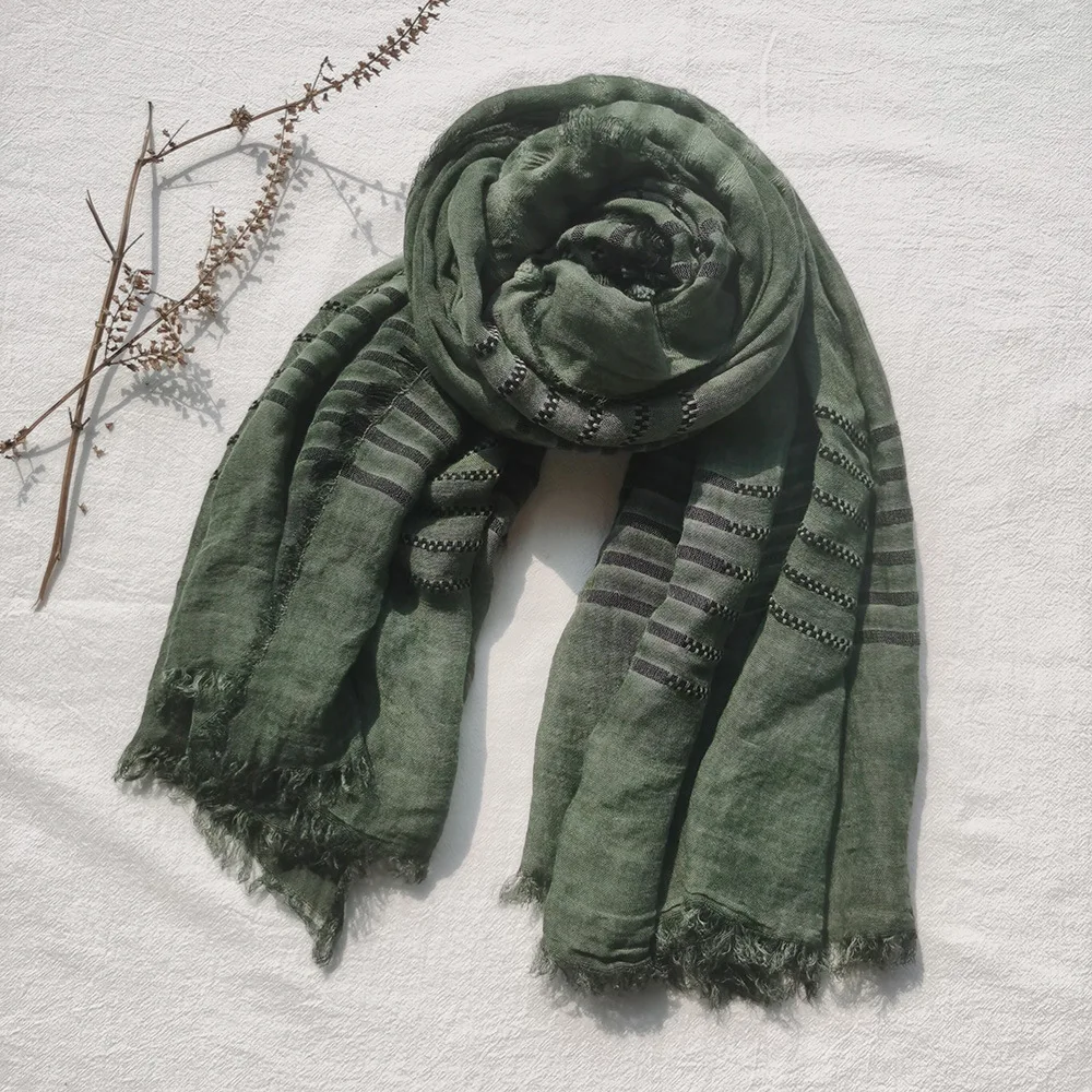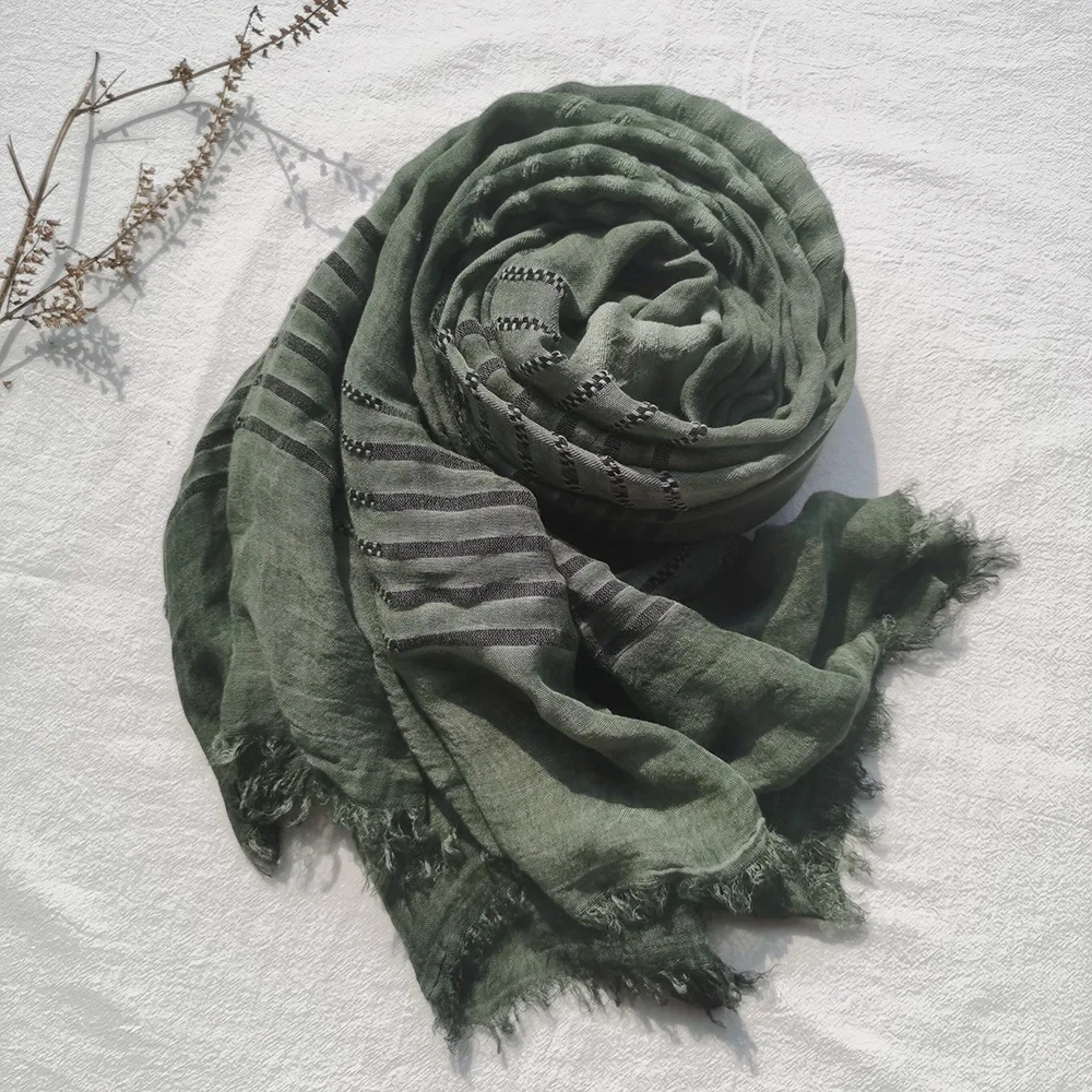 2022 New Men Scarves Green Cotton Linen Tie-dye Striped Men's Scarf Fashion Male Brand Bufanda Long Tassel Men's Accessories