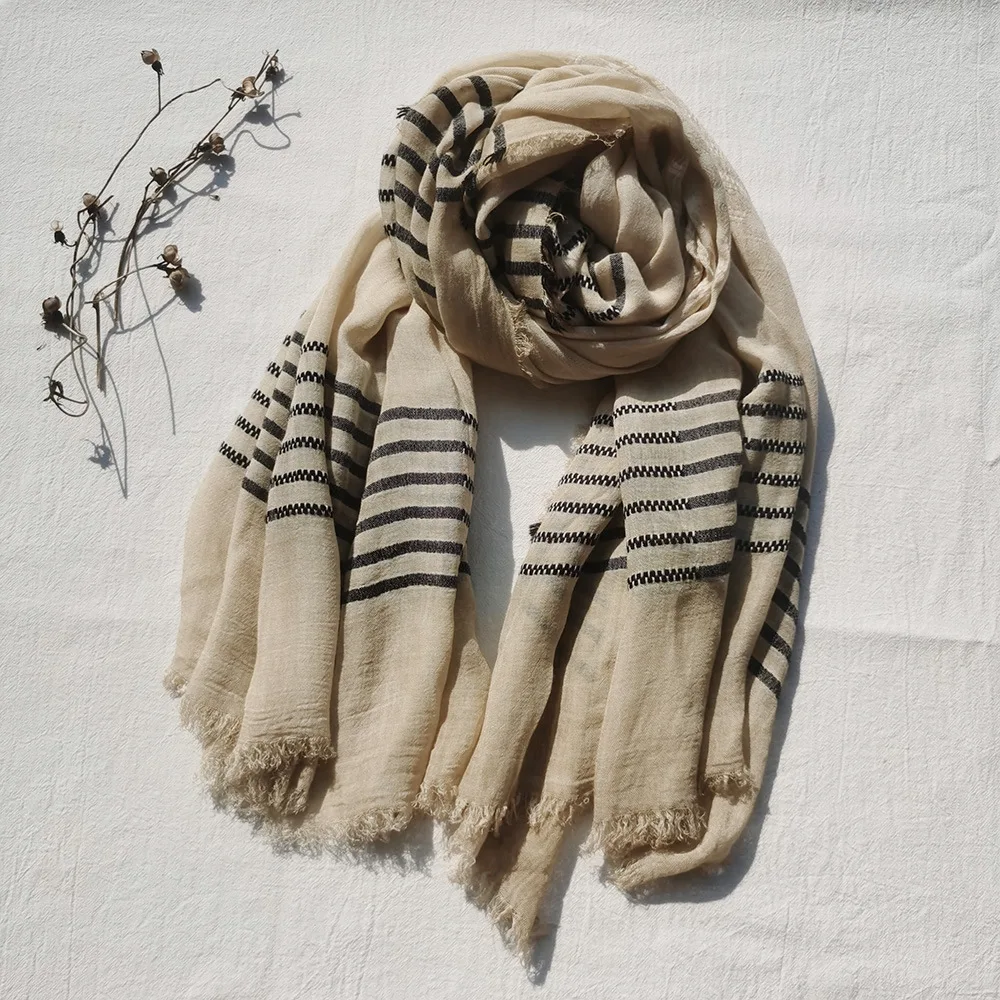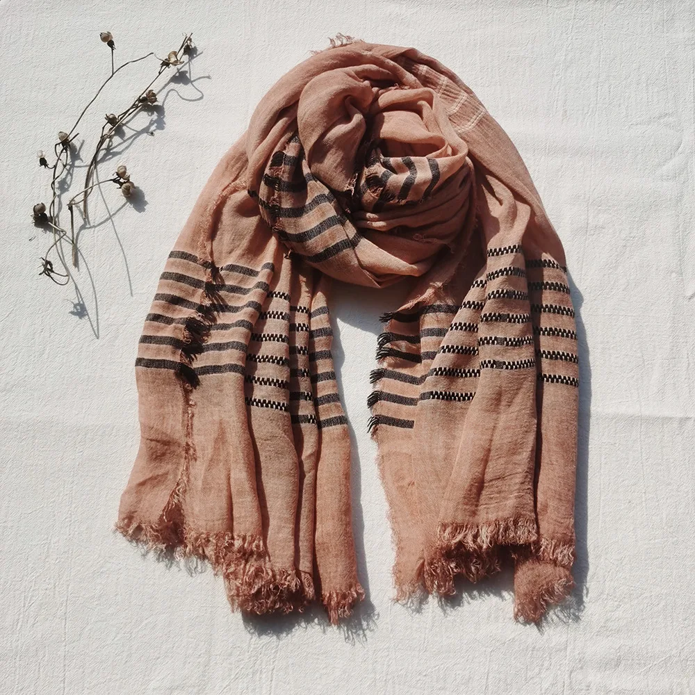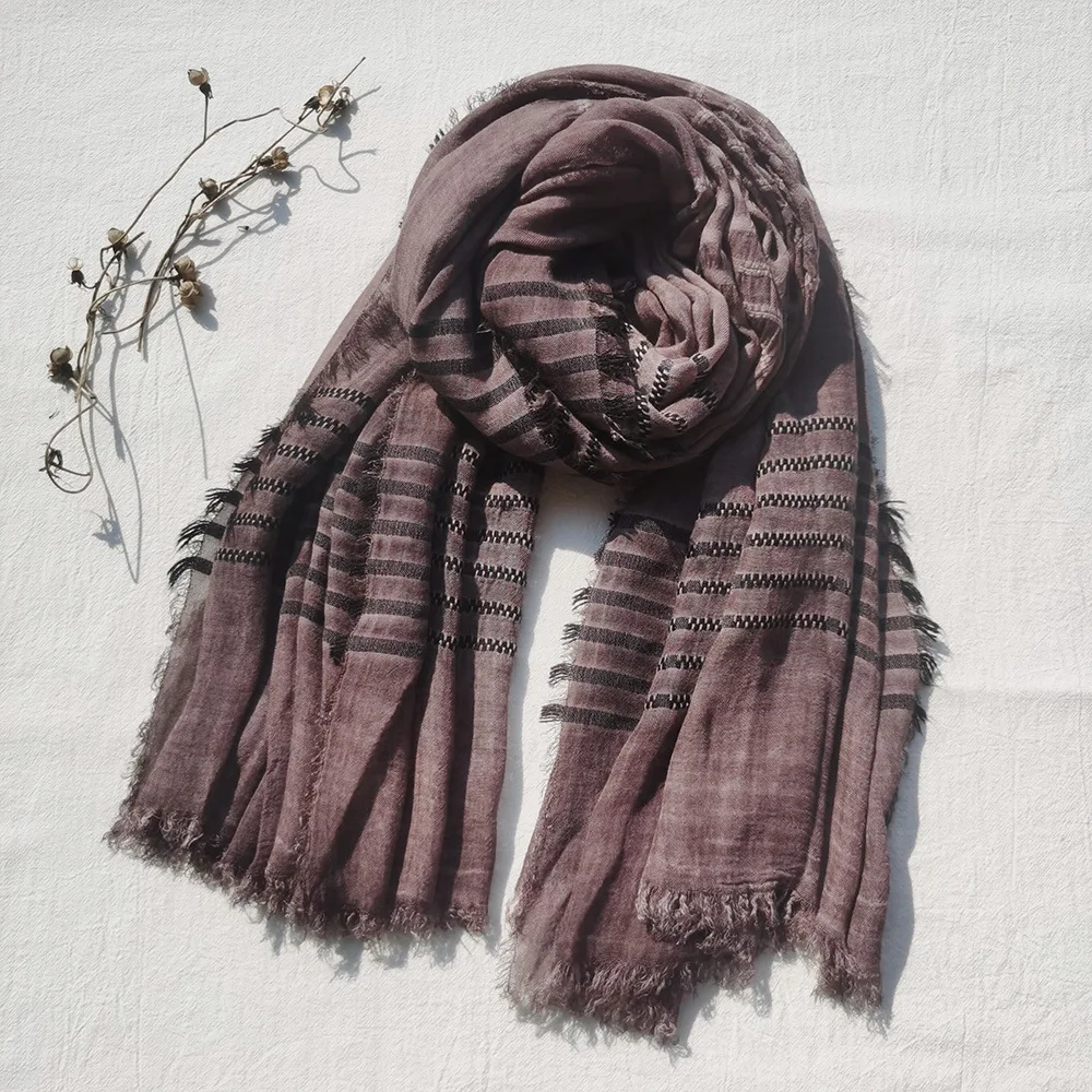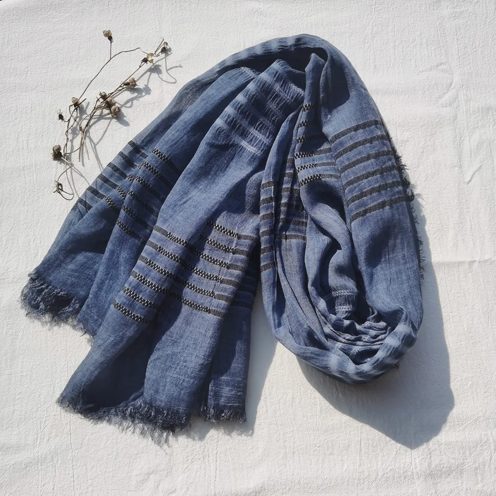 2022 New Men Scarves Green Cotton Linen Tie-dye Striped Men's Scarf Fashion Male Brand Bufanda Long Tassel Men's Accessories