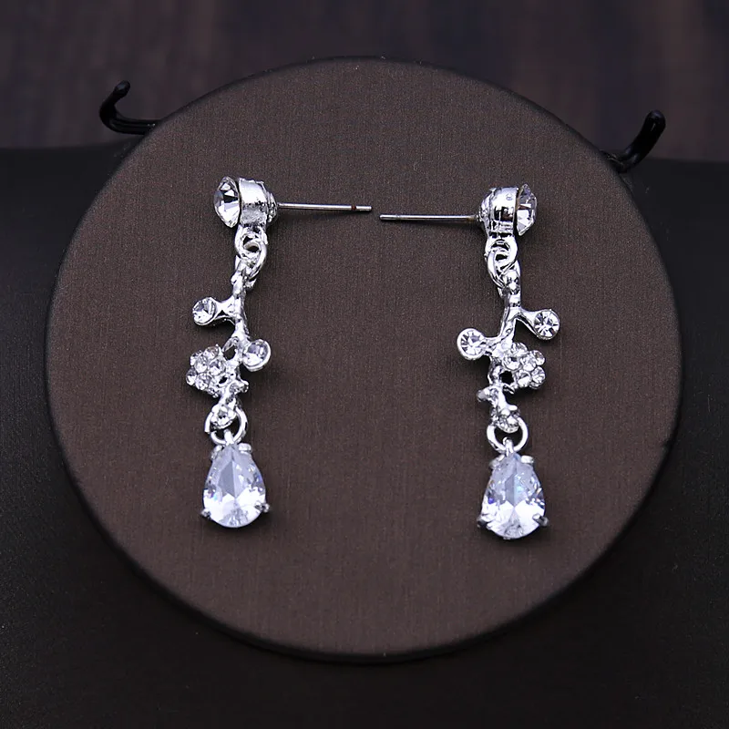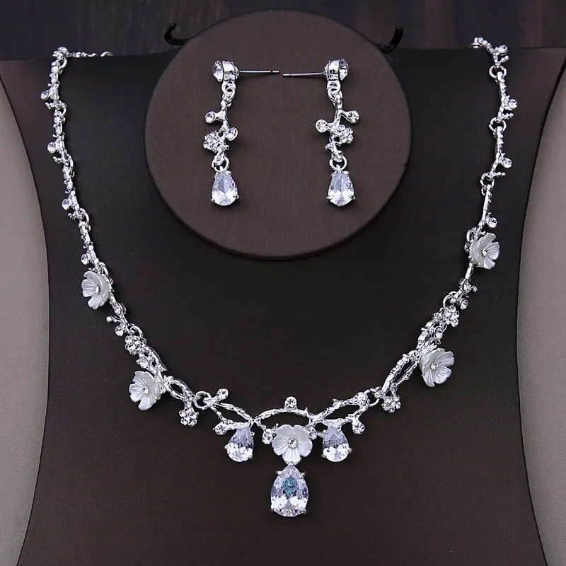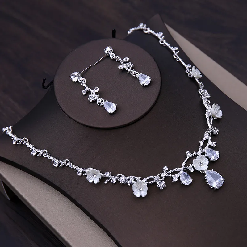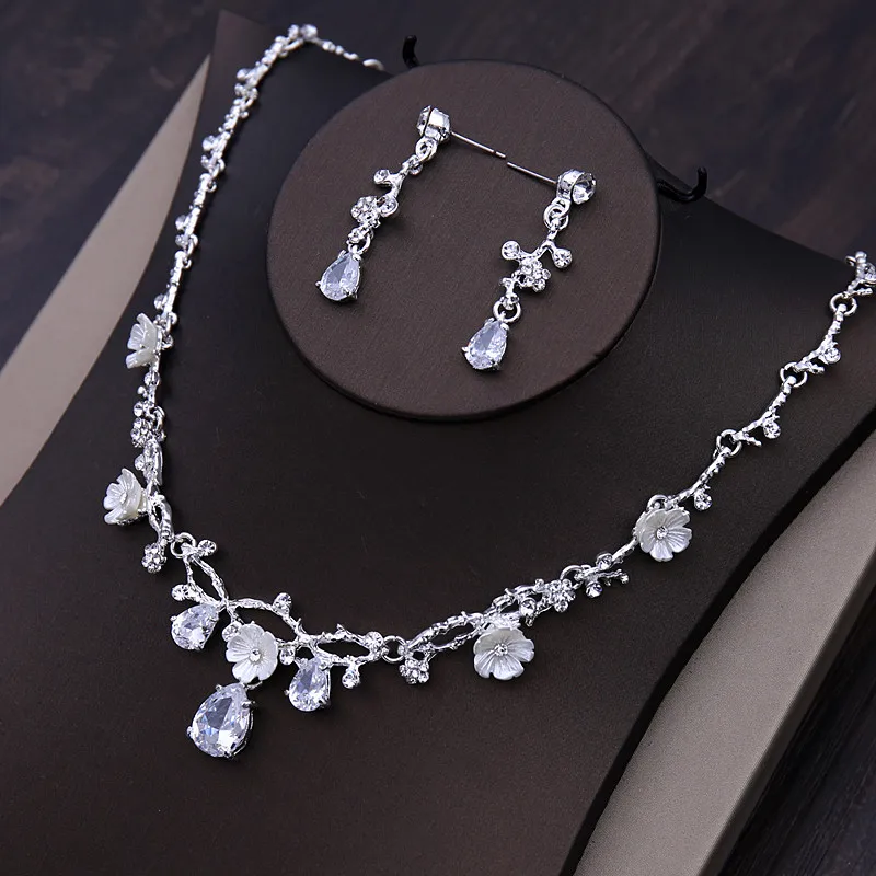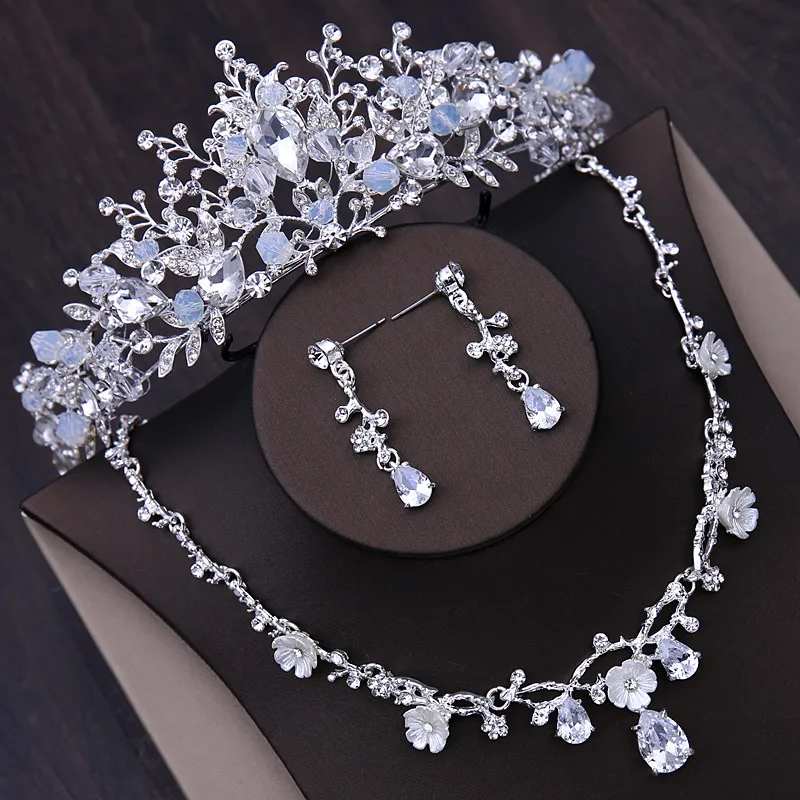 Luxury Silver Color Bridal Headwear Rhinestone Tiaras Pageant Crowns Wedding Headpiece Alloy Women Earring Necklace Jewelry Sets