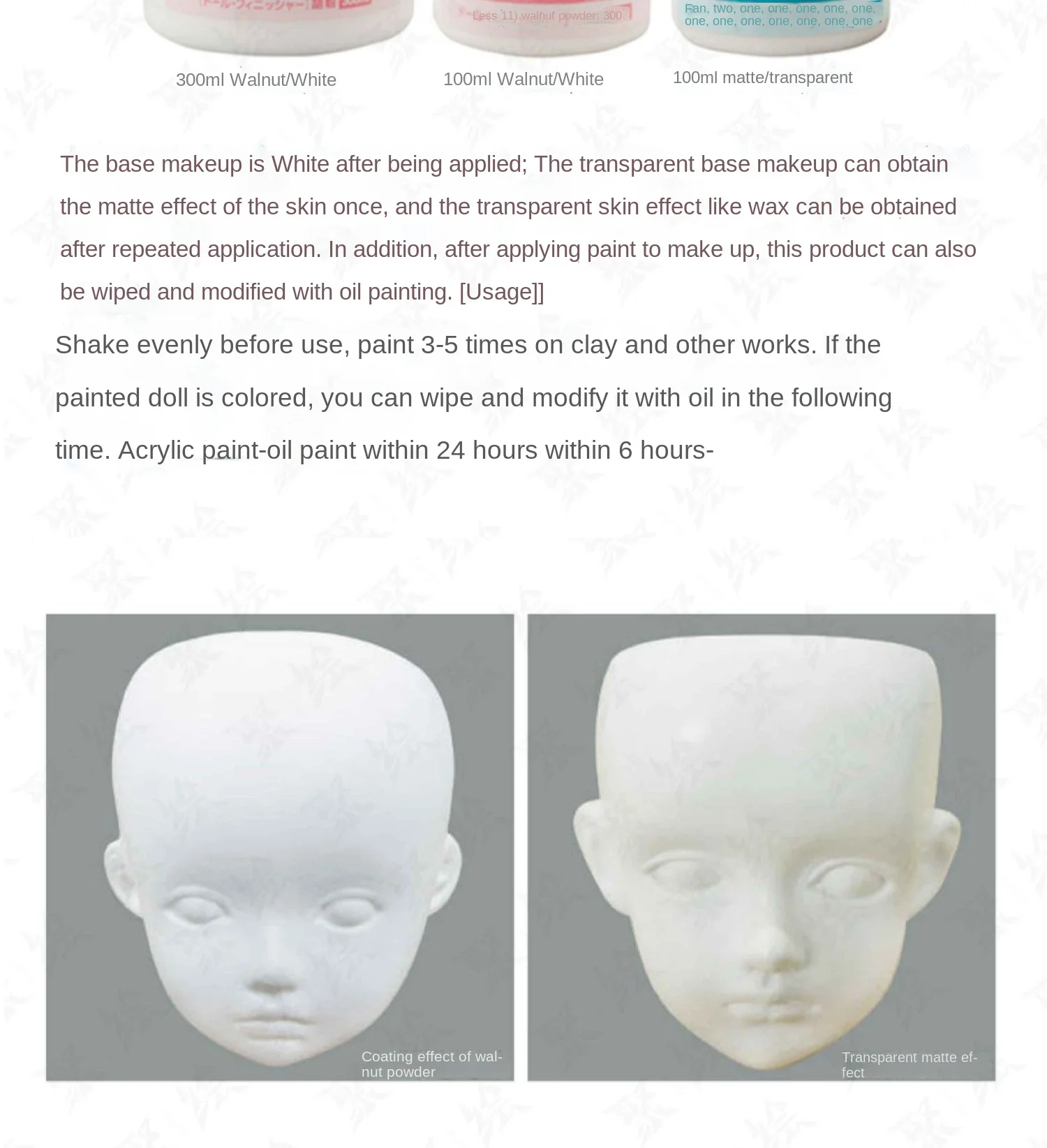 Встряхните равномерно перед использованием, цвет куклы может быть изменен в течение 6 часов после нанесения