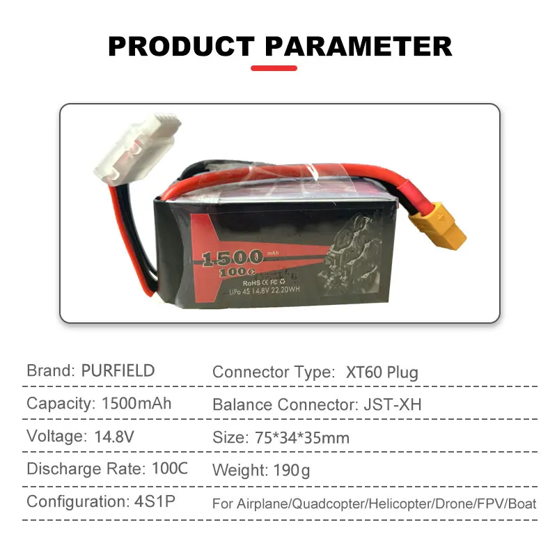 PURFIELD 2S 3S 4S 6S Lipo батарея 1300mah 1500mah 5200mah 6200mah 7200mah Lipo с разъемом Deans XT60 T для RC автомобиля самолета лодки