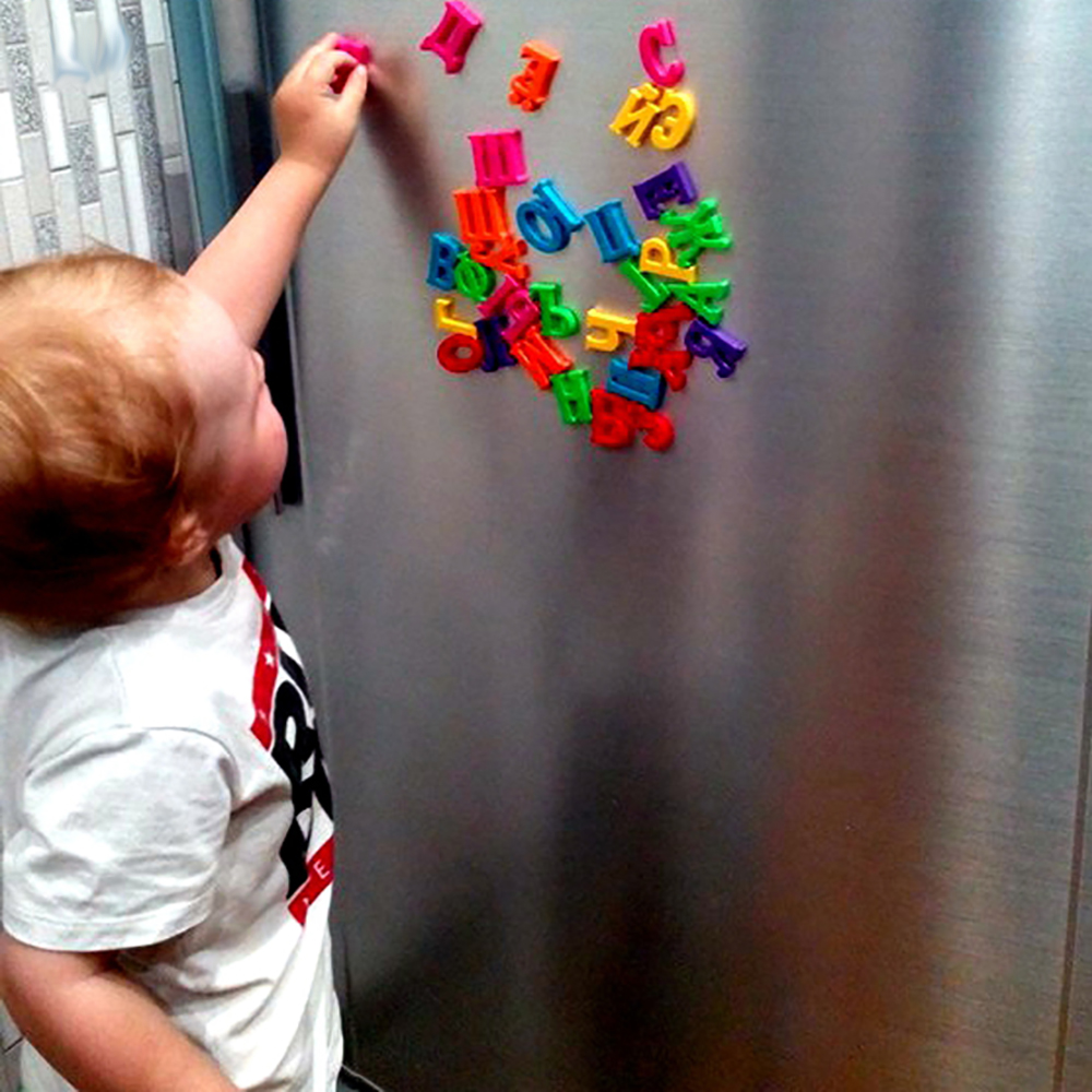 Магнитные русские буквы, которые могут быть использованы в холодильнике или на любой металлической поверхности.