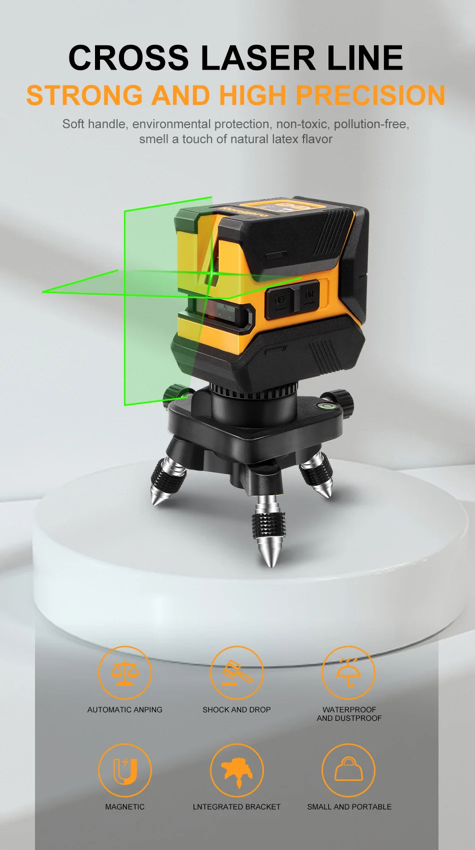 · Точное позиционирование: Точная проекция лазерного Креста на 15 м и полная яркость для лучшей видимости; Время самонивелирования составляет менее 3 секунд; винтовое крепление 1/4 позволяет использовать его с помощью штатива (Опциональная покупка) и легко регулировать его высоту, сделать измерение гибким и стабильным.
