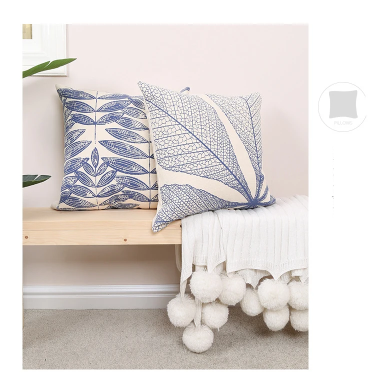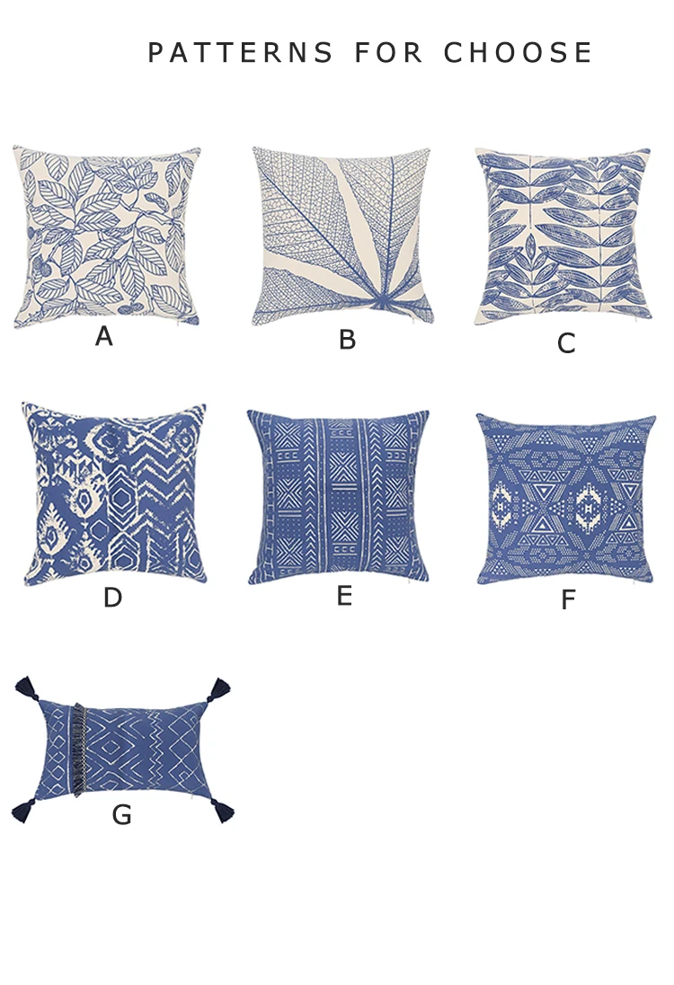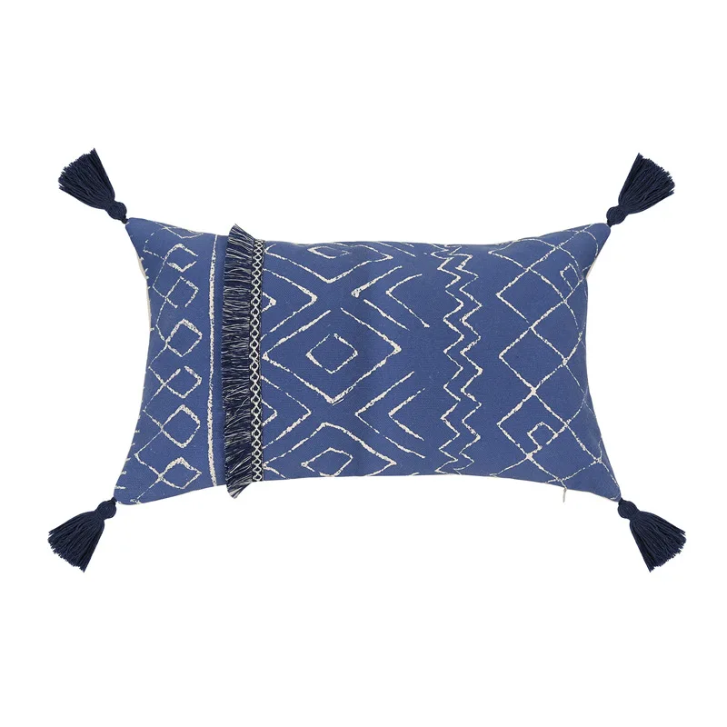 Марокканская наволочка для подушки 45х4, 5 см/30x50 см, винтажный синий лист с принтом для украшения дома, гостиной, спальни, дивана, стула
