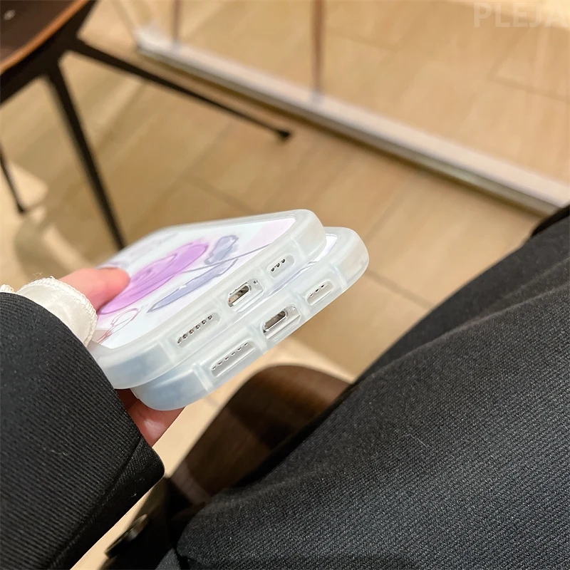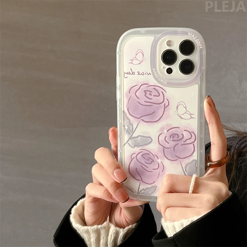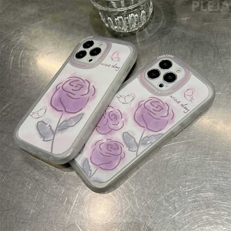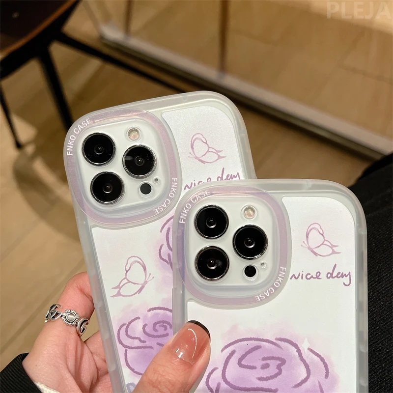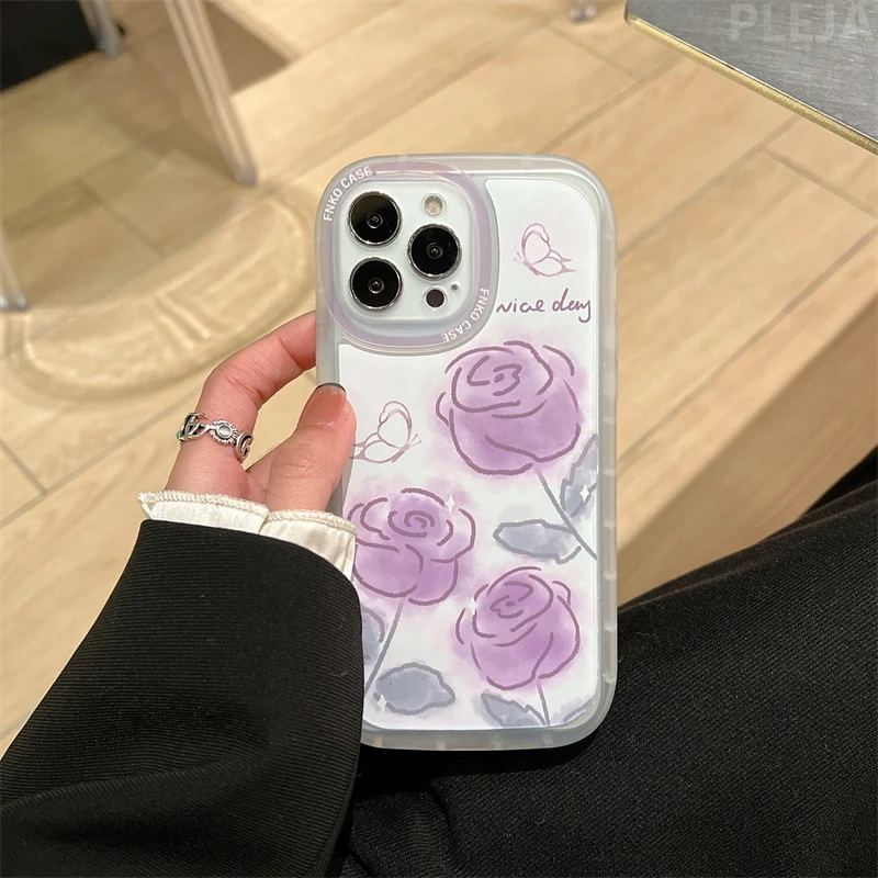 Милый чехол для телефона с фиолетовыми розовыми цветами круглой формы для iPhone 13 Pro 12 11 Pro Max 7 8 Plus X XR XS Max, модные мягкие чехлы