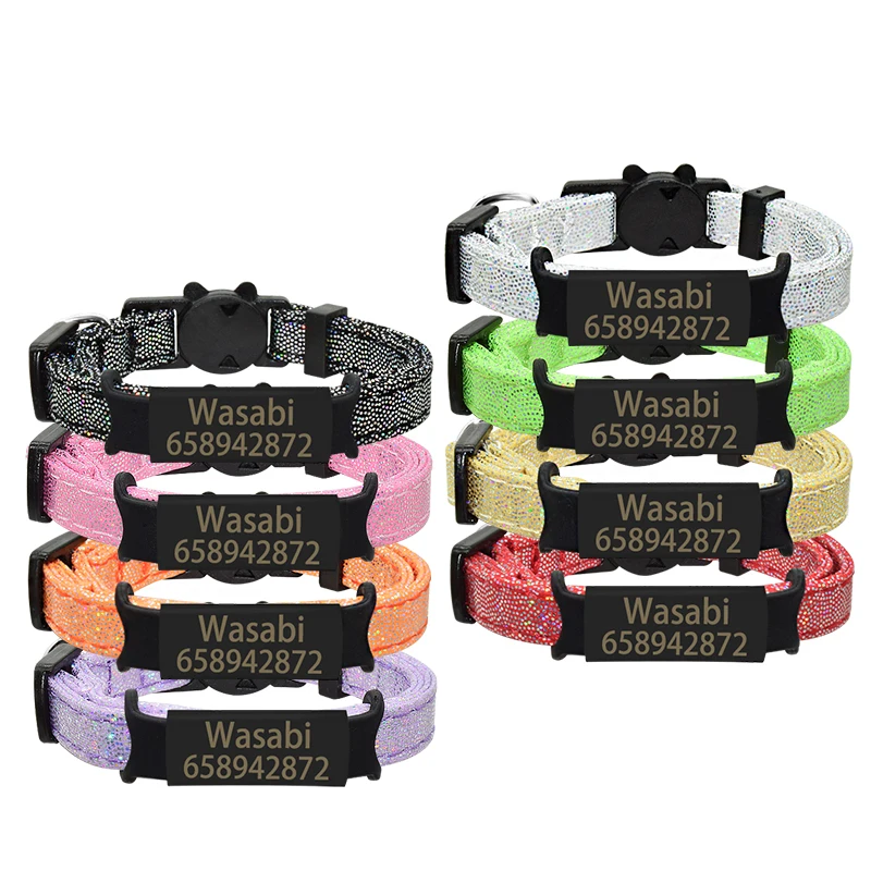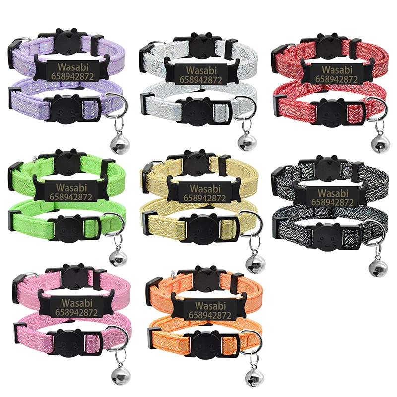 Custom Name Tag Cat Collar Bell Personalized ID Nameplate Cat Collar Necklace Safety Adjustable Anti-Lost Pet Kitten Cat Collar
